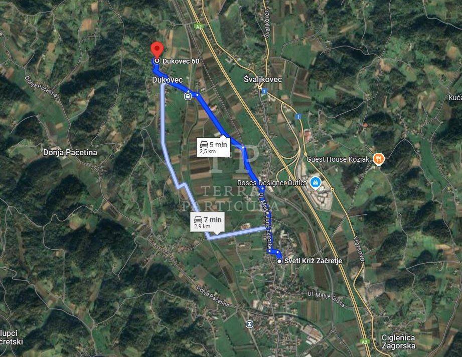Na prodaju nudimo građevinsko zemljište površine 2.501 m² sa starom zagorskom "hižom". Vlasništvo je čisto, bez tereta. Do centra Svetog Križa Začretje udaljenost je cca 2,5 km. Ostale udaljenosti vidljive su u oglasu priloženim skicama. Vodu i plin je moguće priključiti, točke priključenja su u blizini. Priključci struje i telefona postoje, ali su zbog nekorištenja nekretnine odjavljeni. Na okućnici je bunar. Moguće je formirati dva gradilišta.