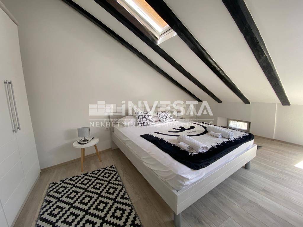 In the very center of Pula, a renovated apartment with a net reduced area of 61.27 m² is for sale. The apartment is located on the third floor/high attic of a well-maintained Austro-Hungarian building.