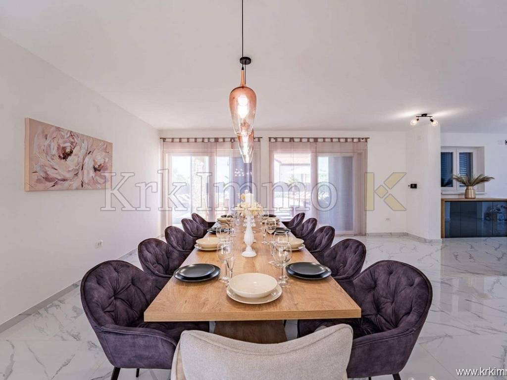 The house is fully furnished and equipped, which means that the new owners can immediately enjoy all the benefits it provides. Three parking spaces provide enough space for parking vehicles. This luxurious detached house on the island of Krk represents an extraordinary opportunity for a comfortable and quality life in a beautiful peaceful environment.