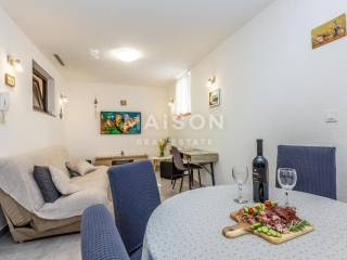 For sale is an apartment located in the basement of a residential building, with a total area of 36.27 m². It consists of one bedroom, a bathroom, and an open-plan dining area with a kitchen and living room. The apartment has access to a 81 m² garden that includes a gazebo offering additional space for relaxation and outdoor gatherings throughout the year. A private parking space is included in the ownership. The building has a new façade, and the sea is located 900 meters away.