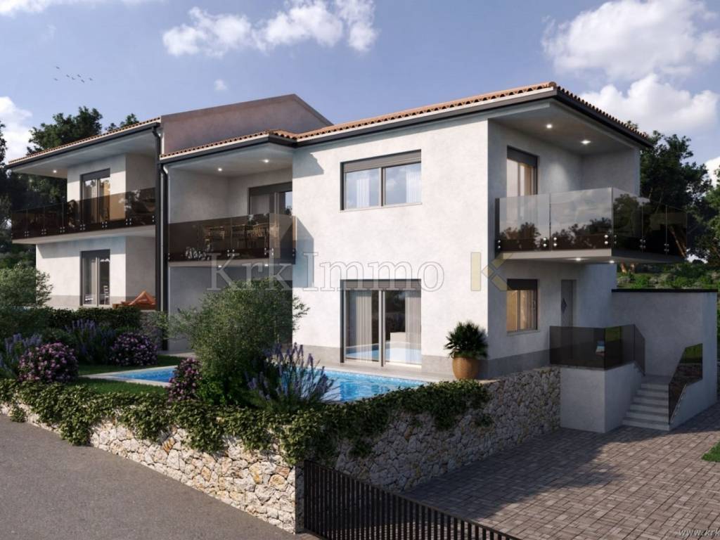 New construction Vrbnik: Ground floor apartment with pool for sale!