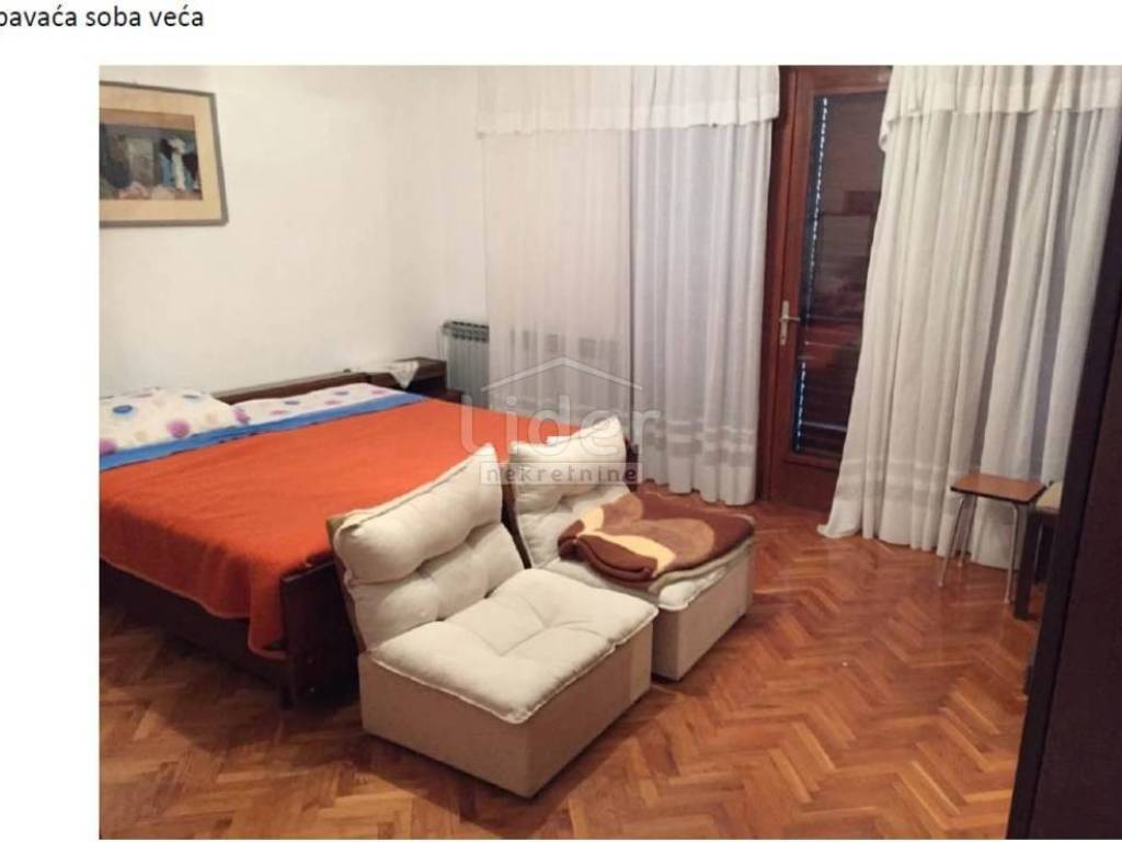 The house in Njivice, second row from the sea, is located on a plot of 666 m2. On the ground floor there is a 40 m2, two-room apartment with a 27 m2 terrace and a boiler room. On the first floor is an apartment of 140 m2, two bedrooms with a living room and a terrace of 76 m2. The house also has two garages.