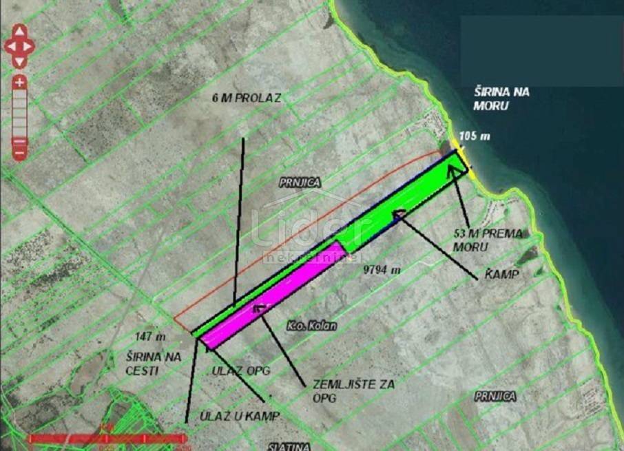 Površine je 134.803 m2, ali je moguća kupnja i manjih parcela. Proteže se od ceste za Novalju do samog mora, odnosno pješčane plaže Prnjica. Ispod samog terena nalazi se prekrasna pješčana plaža imena Prnjica. Na samom terenu je i izvor slatke vode koji je na otocima rijetkost te kao takav predstavlja prirodni fenomen te pruža dodatnu mogućnost komercijalizacije...