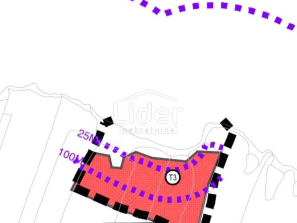 2. Kupnja 1/2 idealne polovice 67.401 m2, od toga u zoni T3 cca 7.000 m2 Desna strana od ceste, od same magistrale do plaže i mora. CIJENA: 1.395.000 € (bez parcelizacije, samo uknjižba vlasništva)