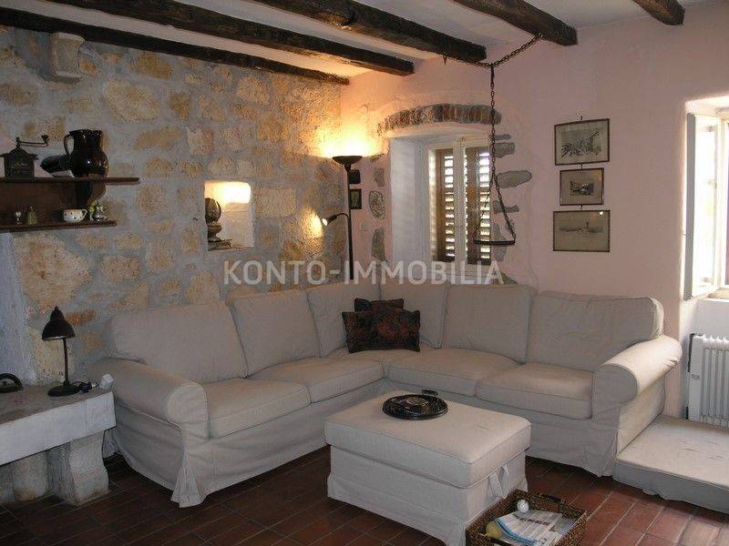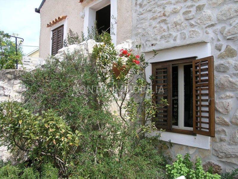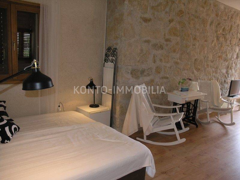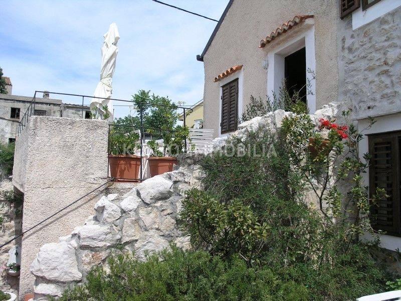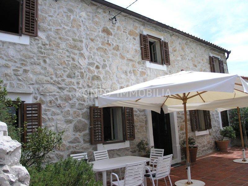 On Rab, in Lopar, on a slight hill, near the sandy beach, an autochthonous stone Rab house renovated in Mediterranean style is for sale. The beautiful stone facade is adorned with indigenous caper bushes, as well as the entrance gate, atrium with a well, and spacious terraces oriented to the west, with stunning views of the sandy beach and the sea.