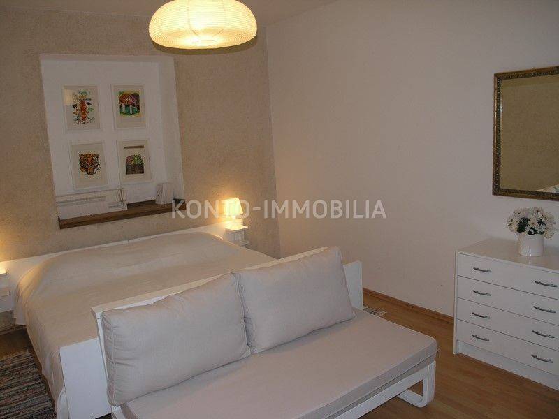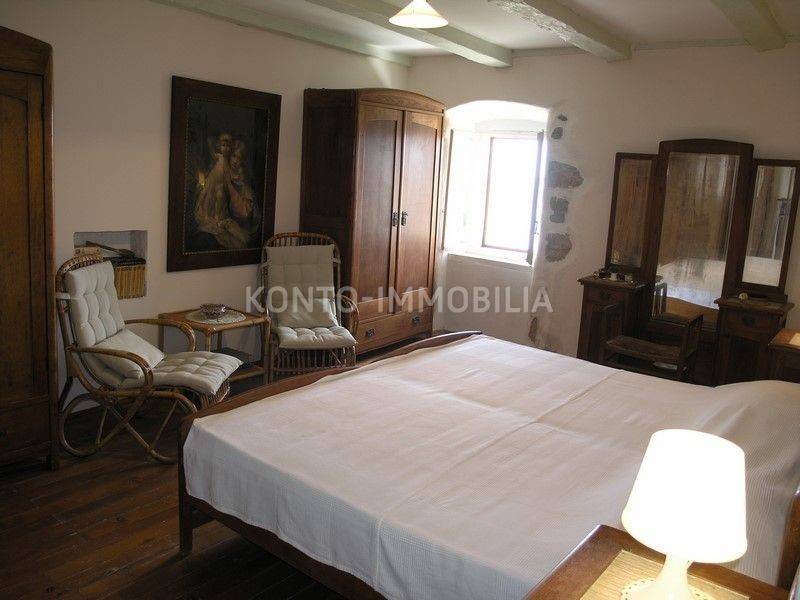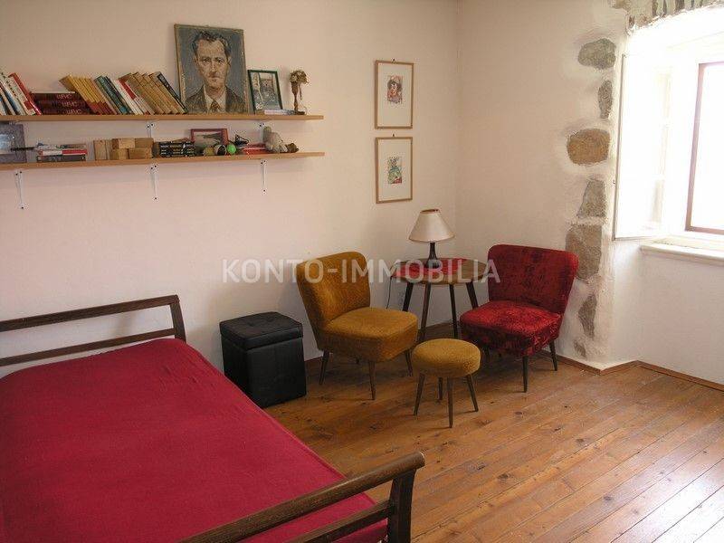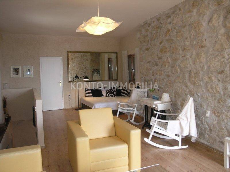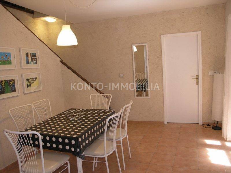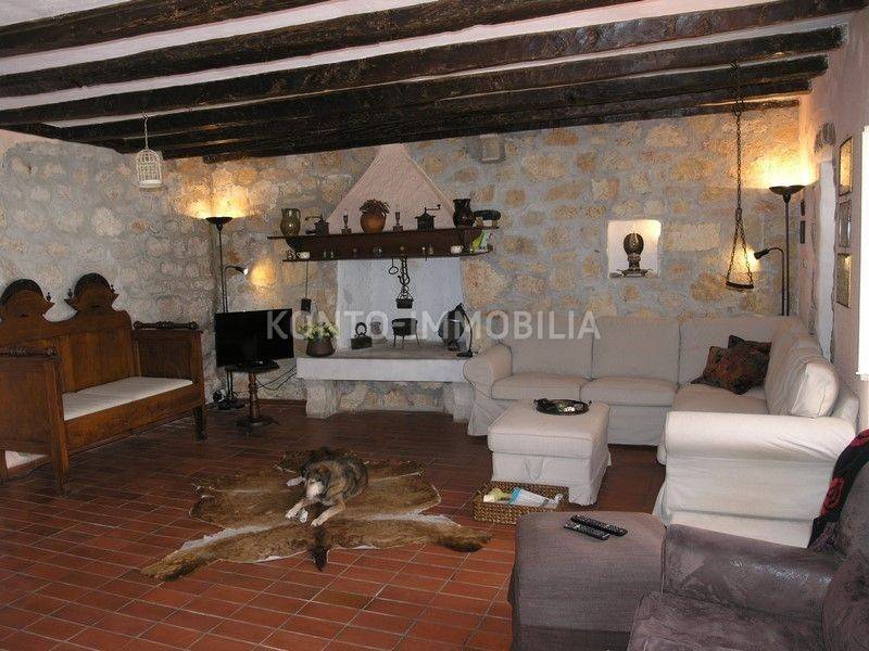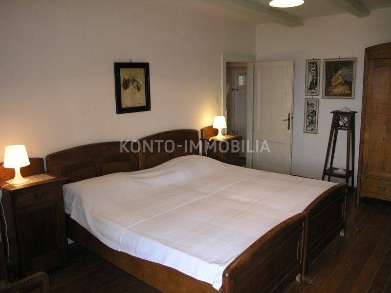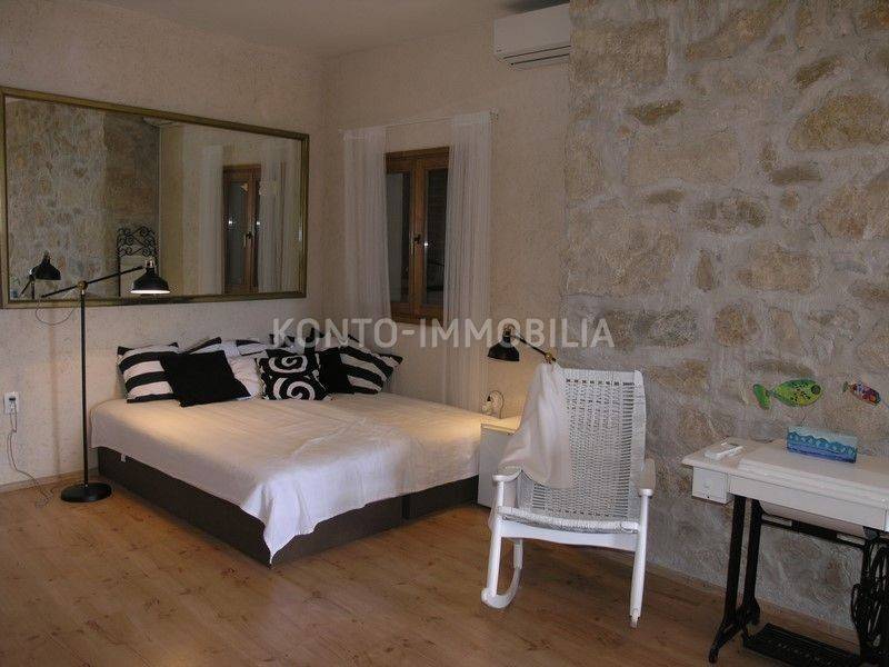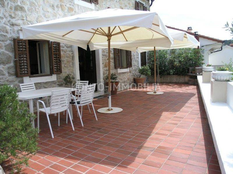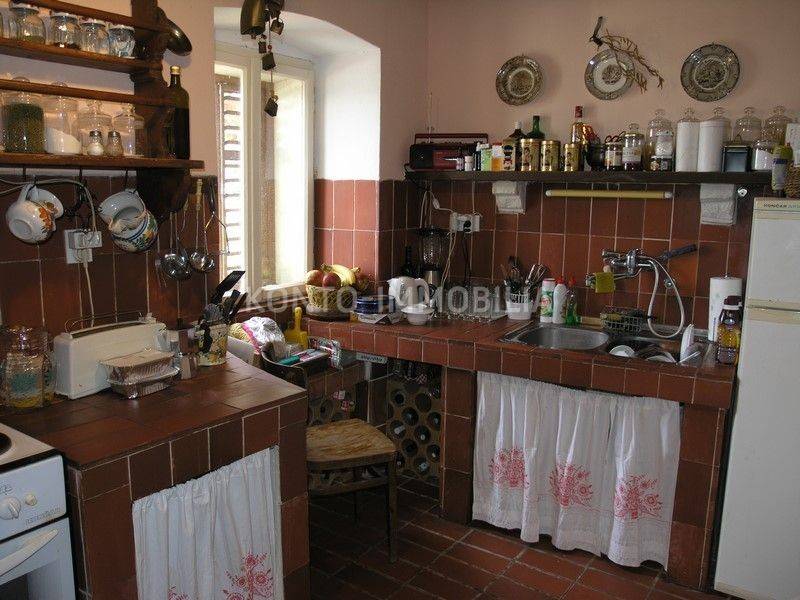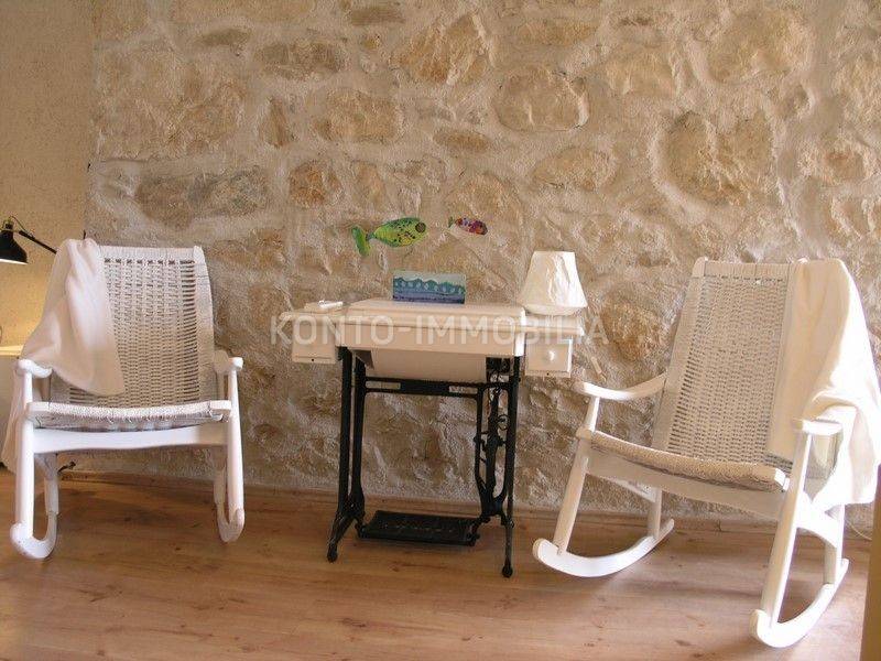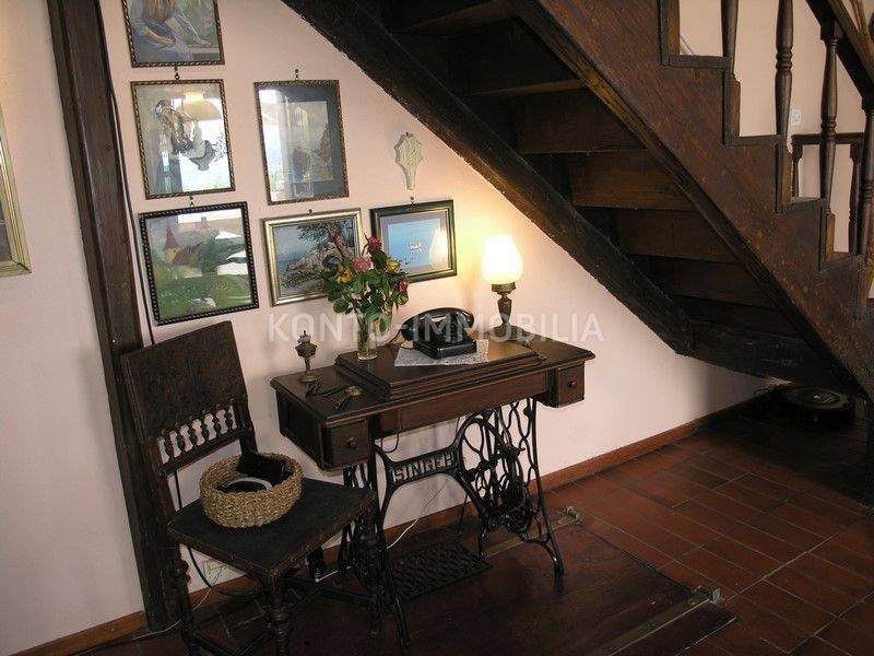 The building consists of a total of two separate residential units, a two-storey two-bedroom apartment on the ground floor and first floor, with a separate entrance, atrium - garden with a well and a terrace (20 m2). In the second part of the house, on the first and second floor, there is a two-level four-room apartment with a terrace of about 50 m2, which is connected by the so-called the tower, which is undeveloped, has three floors, at the top with a covered terrace. In the ground floor there is a large space that is used as a garage, tavern and storage.