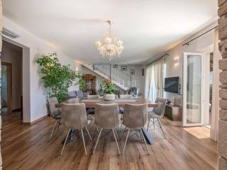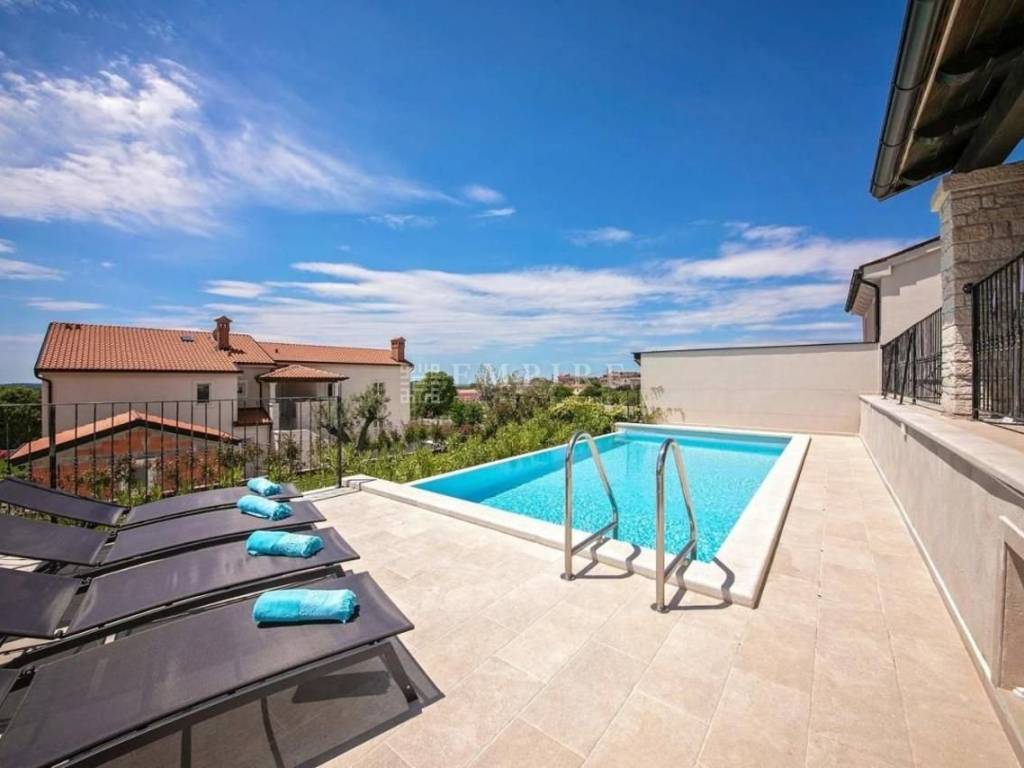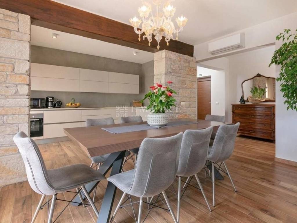 The villa has an area of 200 m² on two floors and is fully air-conditioned. The ground floor includes a living room, dining room, fully equipped kitchen, one double bedroom, and one bathroom with a shower/WC. On the first floor, there are 3 bedrooms, each with its own bathroom, two of which have access to a shared balcony. In the basement, there is a spacious 150 m² room dedicated to entertainment and relaxation. The property has a 418 m² garden with a well-maintained lawn, a 32 m² pool, a spacious covered terrace with seating, a barbecue, and two parking spaces. An ideal property that will offer its new owner a place to enjoy the charms of Istria.