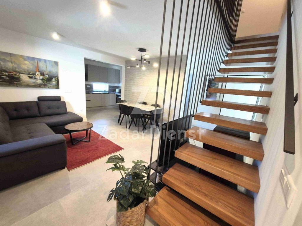A two-story apartment with a net living area of ​​106.85 m2 is for sale in a newly built luxury building with a total of 4 residential units.