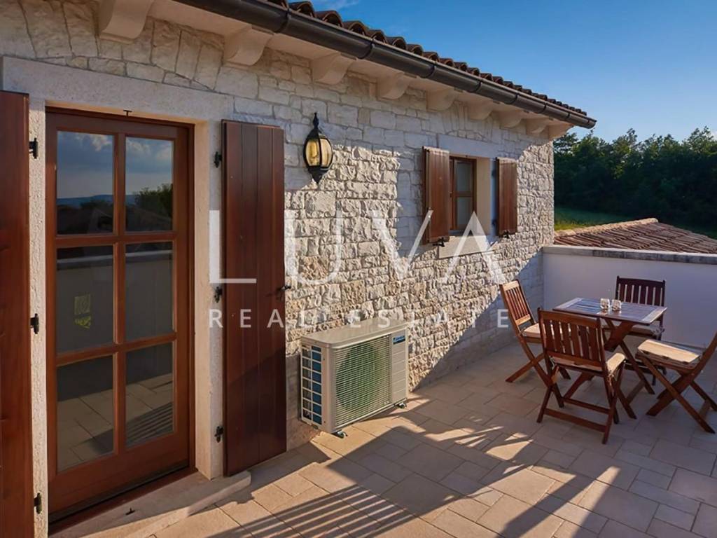 A beautiful stone villa located in Karojba, near the charming town of Motovun, is for sale. Built in 2008 for the personal needs of the owner, this house exudes quality and authentic Istrian charm. It spans two floors with a total of 202 m² of living space, while the entire property of 947 m² is fully fenced, ensuring peace and privacy.