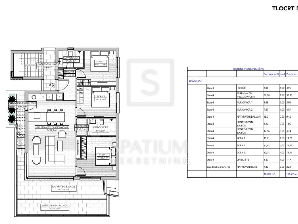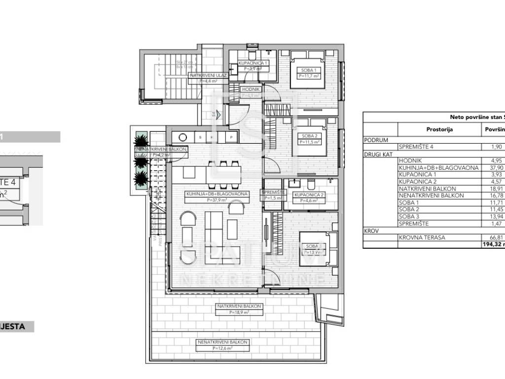 NJIVICE, ISLAND OF KRK, in an exclusive offer is a two-story apartment with a pool in a small new building. The area is 104.45 m2 and it is distributed as follows: kitchen with dining room and living room 38.55 m2, two bedrooms of 11.34 and 11.52 m2, two bathrooms of 5.48 and 4.78 m2, hallway 2.8 m2, storage room 0.84 m2, terrace of 66.10 m2, balcony 5.25 m2 and swimming pool of 11.30 m2. The apartment will be equipped with aluminum carpentry, first-class floor coverings and first-class sanitary facilities. Underfloor heating is installed via a heat pump, and a fan-coil system is used for cooling. Everything will be combined into a smart system, with which this innovative concept will improve the management of all devices and provide better system security and energy efficiency. In a quiet street, surrounded by family houses and luxurious new buildings, next to the green belt, this location offers everything you could wish for on vacation, as well as during a year-round stay. The planned completion of the works is August 2025. Experience a real summer vacation in the charming ambiance of a tourist resort right by the sea! Beautiful beaches, exceptionally blue sea, plenty of shade and a mild climate attract more and more guests to Njivice every year, which today are synonymous with family tourism. Once a small fishing village, Njivice is now a well-known tourist destination, a seaside place with a soul, which guests from European and other countries like to visit. For other information, please contact us with confidence. Azalea Kegalj Licensed agent +385 95 905 5464 azalea@spatium.hr Jana Hodak licensed agent 098/1671-888 jana@spatium.hr Spatium nekretnine +385 51 272 903 info@spatium.hr