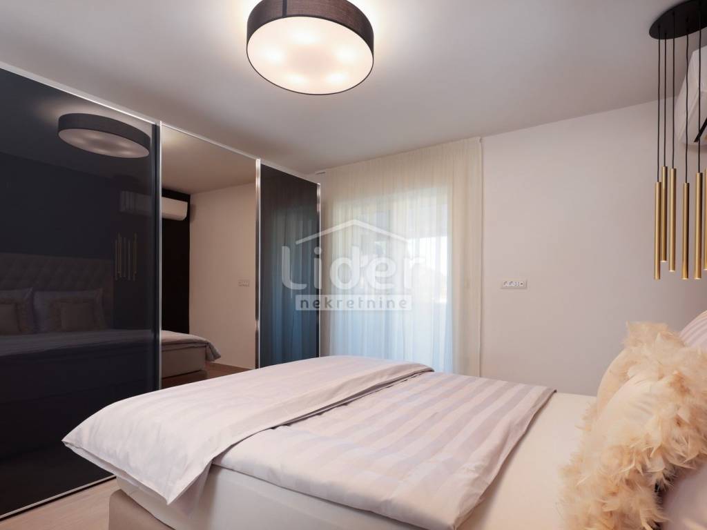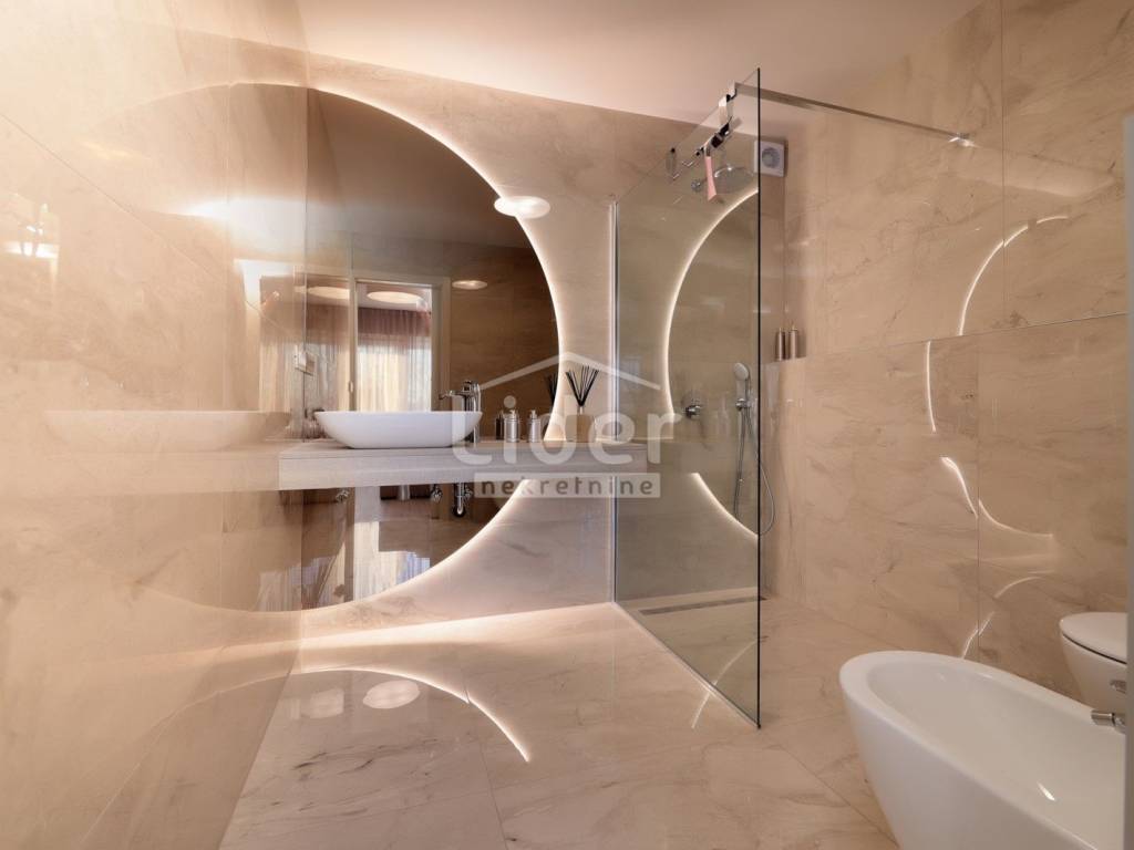 The apartment consists of an entrance hall, three spacious bedrooms each with its own bathroom, living room with dining room and kitchen. All three rooms have access to balconies or a covered terrace. As you can see in the pictures, the apartment is very luxurious and well-equipped. Stylish bathrooms with the most modern appliances, elegant kitchen, high quality carpentry. The apartment is equipped with an alarm and every room has air conditioning.