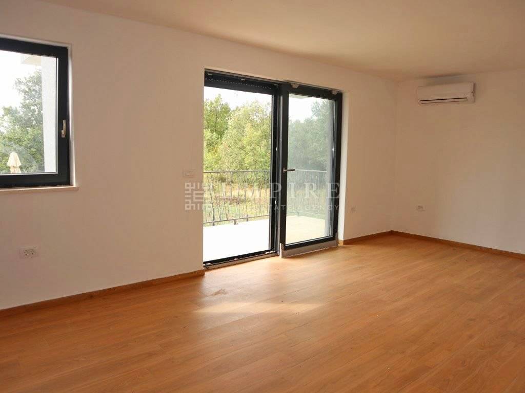 For sale is an apartment on the 1st floor of a newly built multi-family building near Poreč, consisting of five residential units. The apartment covers 63.82 m² and includes a living room with a kitchen leading to a covered terrace with a view of greenery, a hallway, a bathroom, and two bedrooms. The terrace offers privacy, ideal for relaxation. The apartment is equipped with security and fireproof doors, PVC exterior and wooden interior joinery, and ceramic floor tiles. Underfloor heating is installed (except in the bedrooms), and the apartment is air-conditioned. It comes with one parking space, with the possibility of purchasing an additional space. The building has a usage permit.