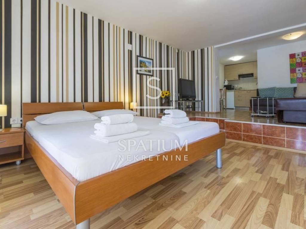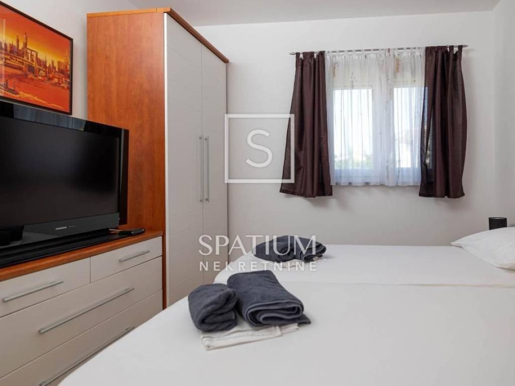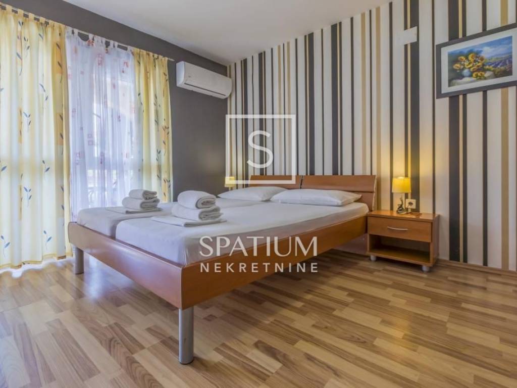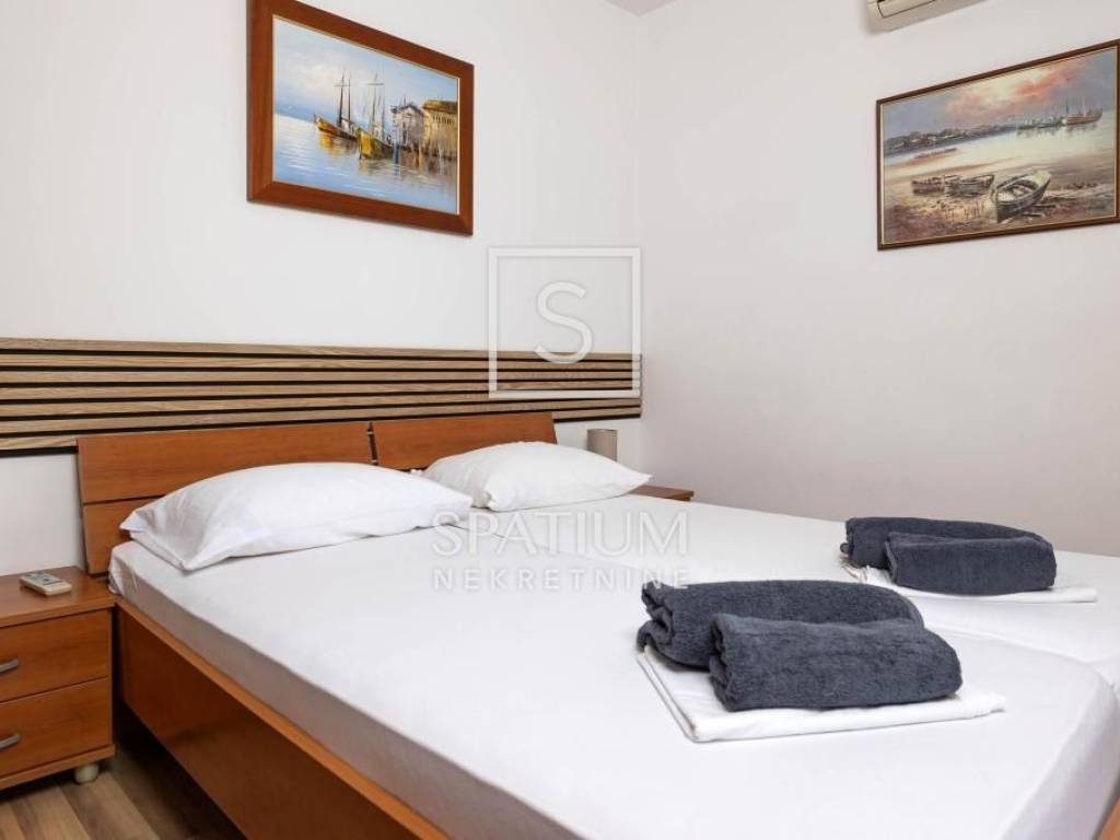 DRAMALJ, CRIKVENICA, we offer an apartment house with a swimming pool. In an excellent location, only 250m from the sea and 200m from the center, there is this beautifully and carefully decorated house with a total of 7 apartments and a spacious garden. It consists of a basement, ground floor and two floors. Basement: studio apartment of 20m2. Ground floor: studio apartment of 36m2 with terrace, apartment with two bedrooms, each with access to the terrace, living room, kitchen, and two bathrooms. Part of the ground floor is occupied by a storage room. First floor: three apartments, each with one bedroom, living room, kitchen, bathroom and balcony, beautiful sea view. Second floor: spacious apartment with kitchen, dining room, spacious living room, three bedrooms, two bathrooms, large terrace and beautiful open sea view. The apartments are air-conditioned, fully furnished and equipped. Inside the spacious garden there is a swimming pool with a sunbathing area, deckchairs, a terrace, a barbecue and a space for socializing. Parking spaces for five vehicles. Close to the sea and the center. The attractive property is in a successfully developed tourist industry, and the future owner can take over and continue the well-established business. A property worthy of attention.