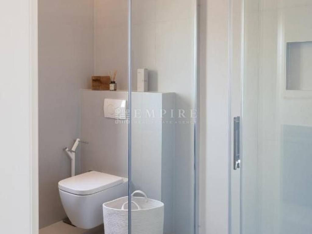 Upstairs, you will find two spacious bedrooms, each with carefully designed details. One bedroom has access to the terrace with beautiful sea views – a perfect spot for morning coffee or evening relaxation to the sounds of the waves. Two modern bathrooms, with underfloor heating beneath stylish Italian-designed tiles, add extra comfort and luxury.