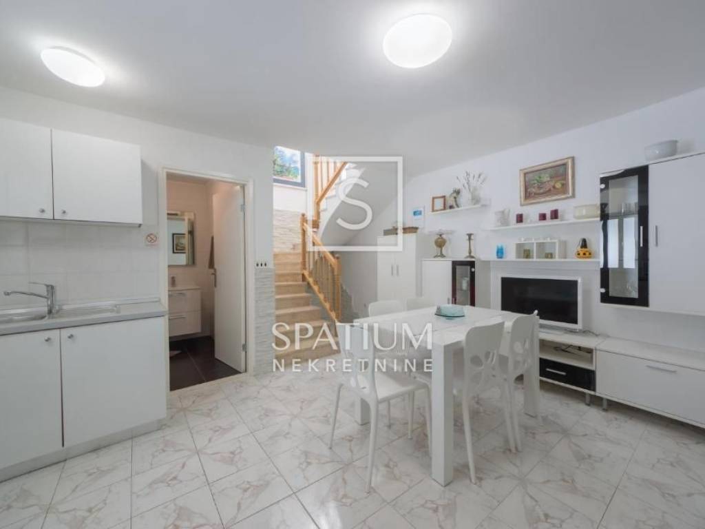 PJEŠČANA UVALA, a luxury house with a swimming pool is available for sale, with a total area of 530 m², situated on a spacious 800 m² plot in one of the most desirable areas of Pula, just 300 meters from the sea. The property consists of five luxuriously rustic furnished residential units – three two-bedroom apartments with two bathrooms, one one-bedroom apartment, and one studio – each with a private terrace, balcony, or loggia, and access to an elegant pool that creates a special atmosphere. Each unit is equipped with high-quality carpentry, ceramics, parquet floors, and sanitary ware. The property also includes a spacious garage, utility rooms, and a landscaped garden with an automatic irrigation system, as well as plenty of paved parking spaces. This property represents an ideal combination of a luxurious family home and an opportunity for tourist rental, providing a quicker return on investment.