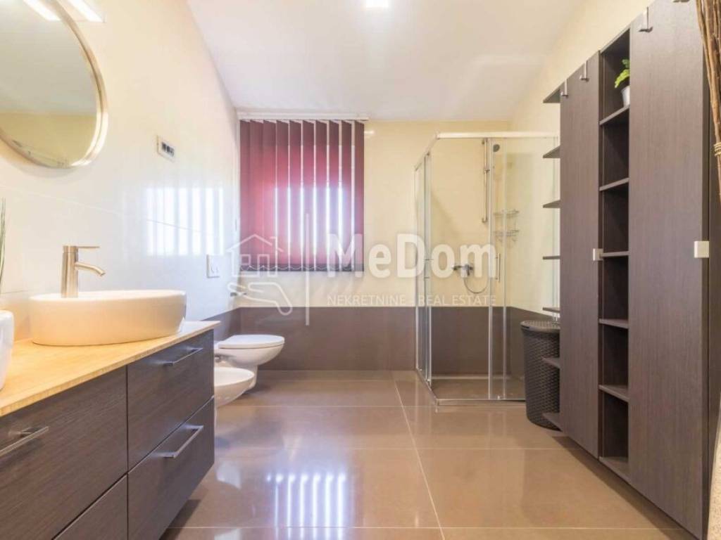 Istria, Valtura, a larger detached exclusive villa of 600m2 living space, is for sale. It is built with top-quality materials, a landscaped environment, and a garden for growing organic vegetables and olives with its well. The villa has all the necessary equipment for luxurious living, active vacation, or tourism on a plot of 1780m2.