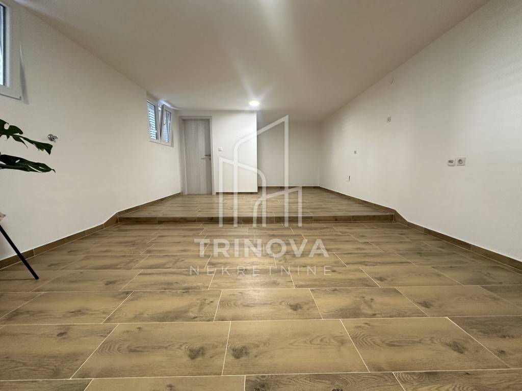 Daje se u najam poslovni prostor površine 75 m2 smješten u suterenu obiteljske kuće. Sastoji se od hodnika, dvije prostorije od kojih je jedna površine 55 m2 i ima toalet, a druga je površine 20 m2. Ulaz je odvojen od ulaza u kuću. Pristup u dvorište je također odvojen. Parkirna mjesta su dostupna u blizini kuće. Orijentacija prostora je jugozapadna. Stolarija je PVC. Lokacija je prilično dobra. Prostor je smješten blizu centra, u okruženju stambenih zgrada i obiteljskih kuća. Upravo je obnovljen, ali nisu postavljeni klima uređaji. Grijanje i hlađenje treba riješiti najmoprimatelj po vlastitoj želji. Poželjna je mirna djelatnost. Za sve dodatne informacije, kontaktirajte nas na 091 152 7577.