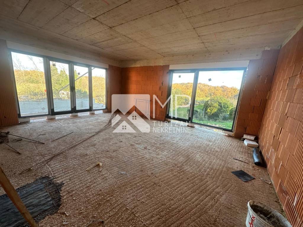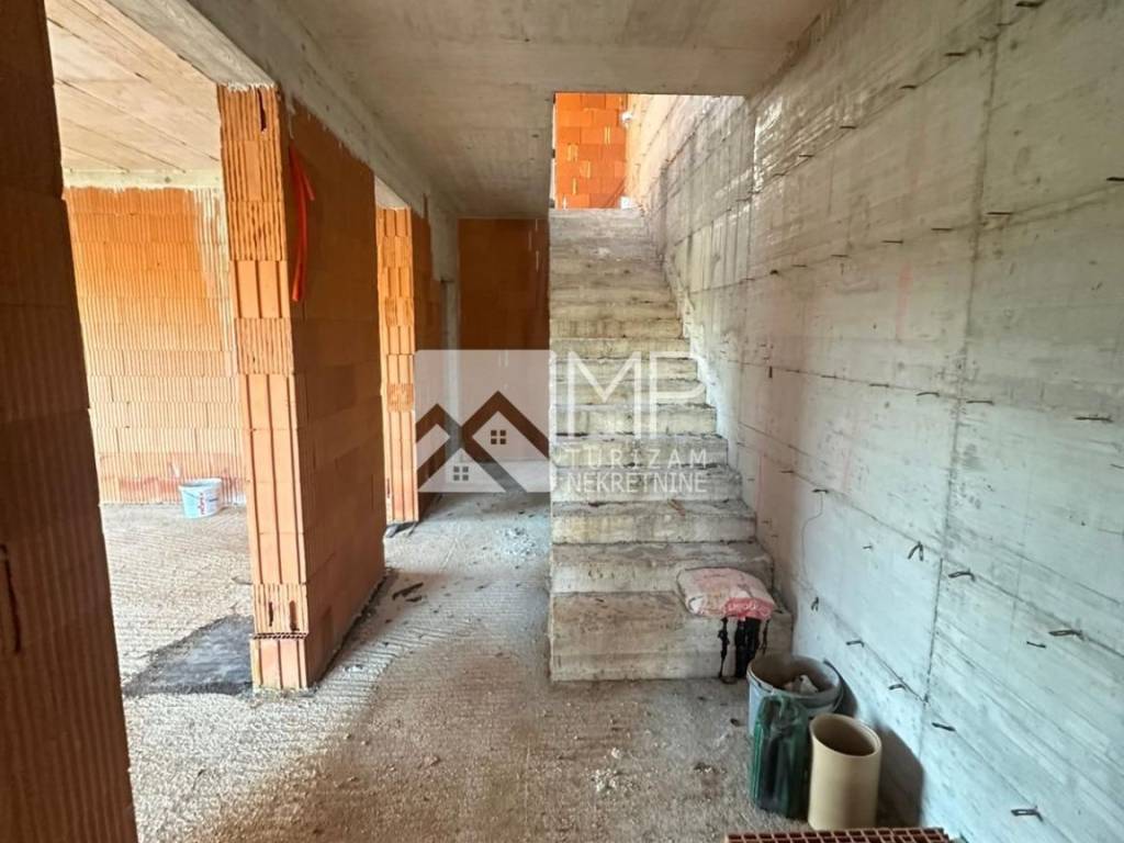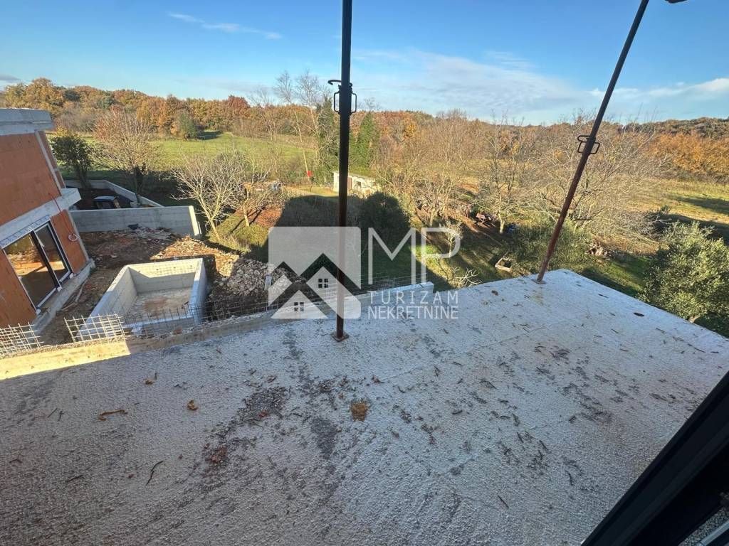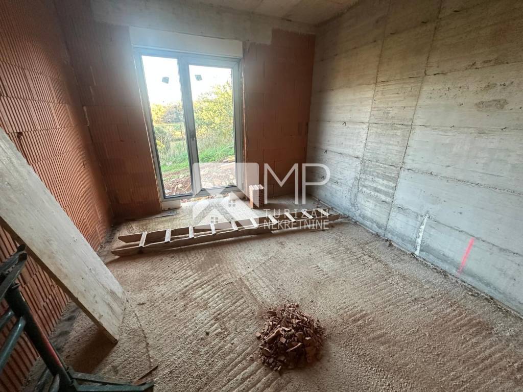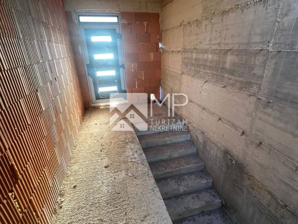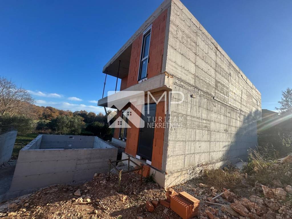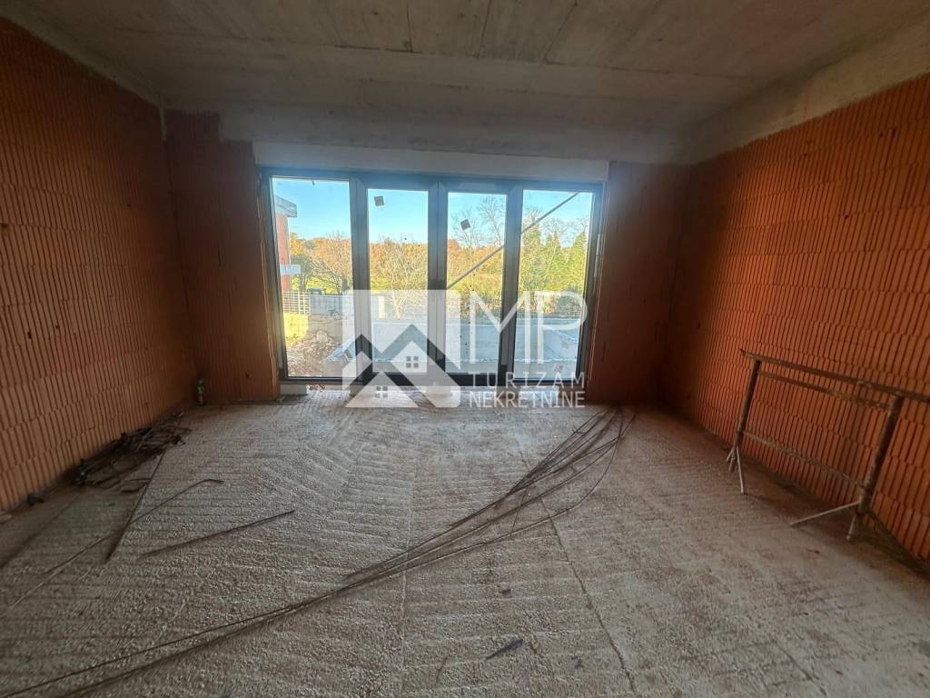 VALTURA, a small settlement in the municipality of Ližnjan, 6 km from Pula. In a quiet location, away from the hustle and bustle of the city, we are selling a family house marked "B" located on a plot of 400m2. It is a semi-detached house spread over two floors - basement and ground floor with a net area of 178.85 m2. In the basement there is a hallway, bedroom, bathroom, living room + kitchen + dining room, covered terrace, bathroom and technical room + storage room (94.65m2). On the upper floor, there is a hallway and two bedrooms - each with a bathroom and a covered terrace. Two parking spaces are provided in front of the house. Apart from the quiet location, the land is located on the edge of the construction zone and nothing can be built in front of it. The advertised price of €270,000 refers to the house in its current phase - finished roof, built-in joinery, built partitions and concreted pool. An agreement on the completion of the house is possible. 1/1 ownership, no encumbrances. The distance from the town center, restaurants and shops is 900m. Distance to Pula Airport 3.7 km. Distance from the sea is 6 km.