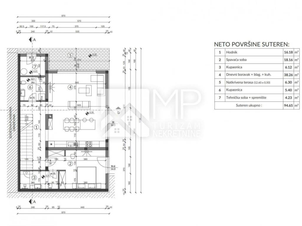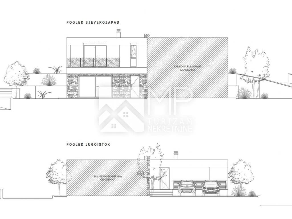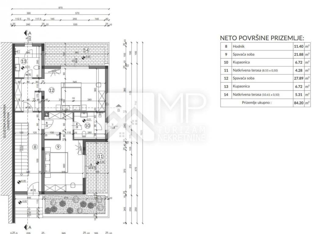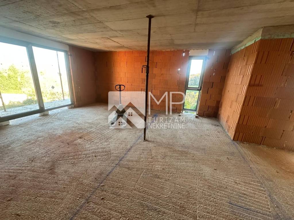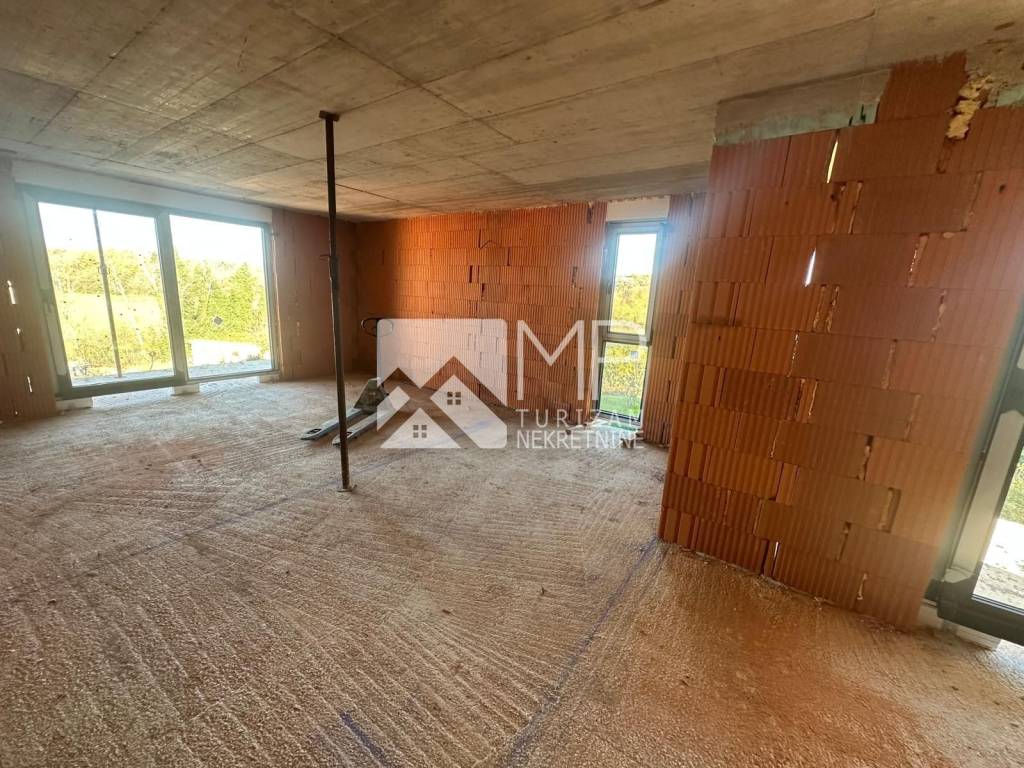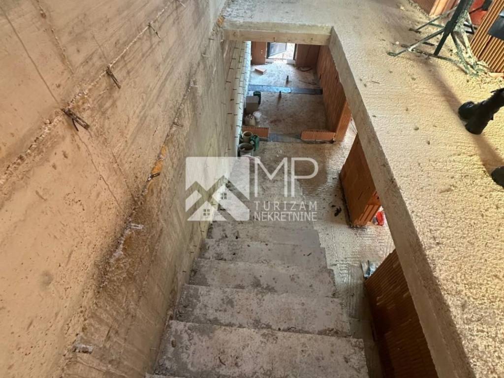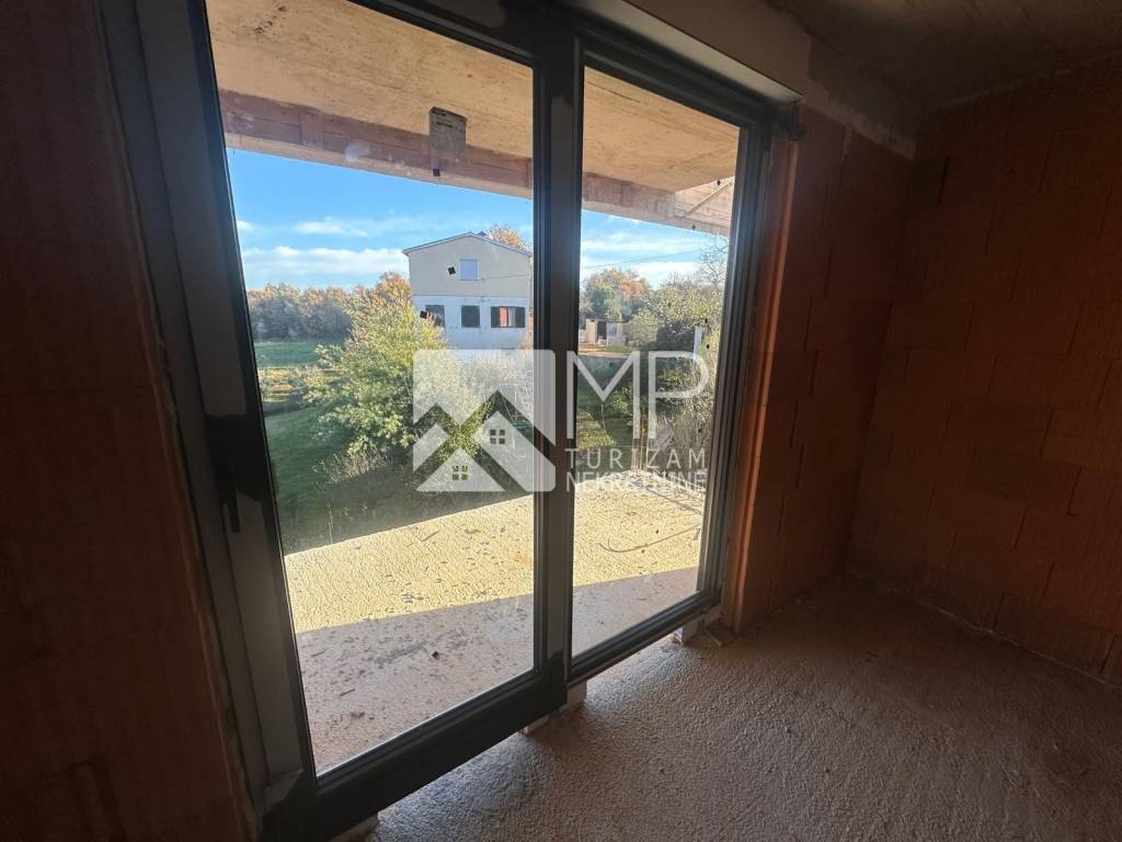 VALTURA, a small settlement in the municipality of Ližnjan, 6 km from Pula. In a quiet location, away from the hustle and bustle of the city, we are selling a family house marked "B" located on a plot of 400m2. It is a semi-detached house spread over two floors - basement and ground floor with a net area of 178.85 m2. In the basement there is a hallway, bedroom, bathroom, living room + kitchen + dining room, covered terrace, bathroom and technical room + storage room (94.65m2). On the upper floor, there is a hallway and two bedrooms - each with a bathroom and a covered terrace. Two parking spaces are provided in front of the house. Apart from the quiet location, the land is located on the edge of the construction zone and nothing can be built in front of it. The advertised price of €270,000 refers to the house in its current phase - finished roof, built-in joinery, built partitions and concreted pool. An agreement on the completion of the house is possible. 1/1 ownership, no encumbrances. The distance from the town center, restaurants and shops is 900m. Distance to Pula Airport 3.7 km. Distance from the sea is 6 km.