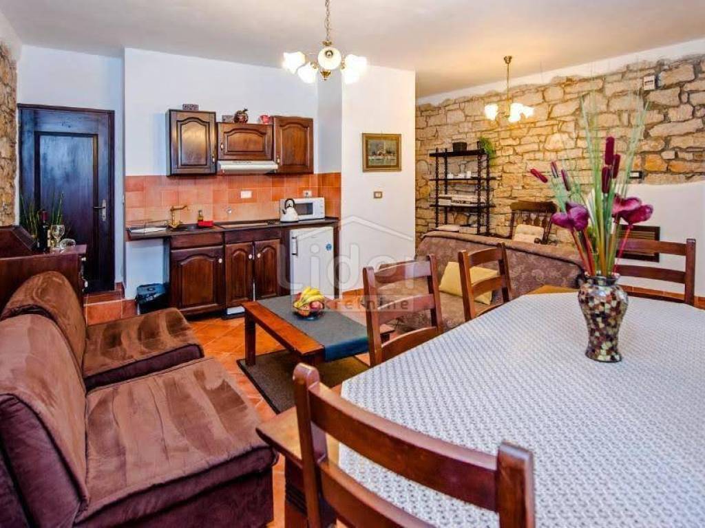 In the heart of Srarog the city of Rovinj, a beautiful apartment for sale, on the ground floor of a three -dwelling building, with a special entrance and terrace in front of the building. The square footage of the apartment is approximately 50 m2, in nature one bedroom with a living room, furnished in a rustic style, where prophetic materials are prevalent wood, stone.