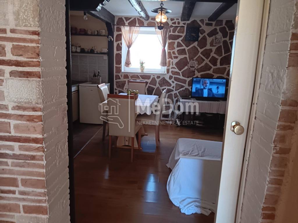 MeDom agency mediates the sale of Istrian stone houses in a row, in a quiet village, only 3 km from the city of Poreč. The house has a total living area of 104.84 m2 on three floors. On the ground floor of the house there is a living room with a kitchen and dining room and a bathroom. On the first floor there are two bedrooms and a toilet, while in the attic there is another bedroom that can also be used as a study. The house also has a yard of 20 m2 with a beautiful covered terrace. The house was renovated with Istrian stone and quality wooden beams in a rustic style. It shares a warm and playful feel and is ready to move into immediately without additional renovation costs. An opportunity for those who want to have their own peace in the vicinity of a city with all the necessary facilities for life. The house is on the edge of the construction zone, right next to meadows and arable fields, so it offers the future owners fantastic peace and a beautiful view of the greenery. The house was completely renovated in 2004. All documentation is in order.