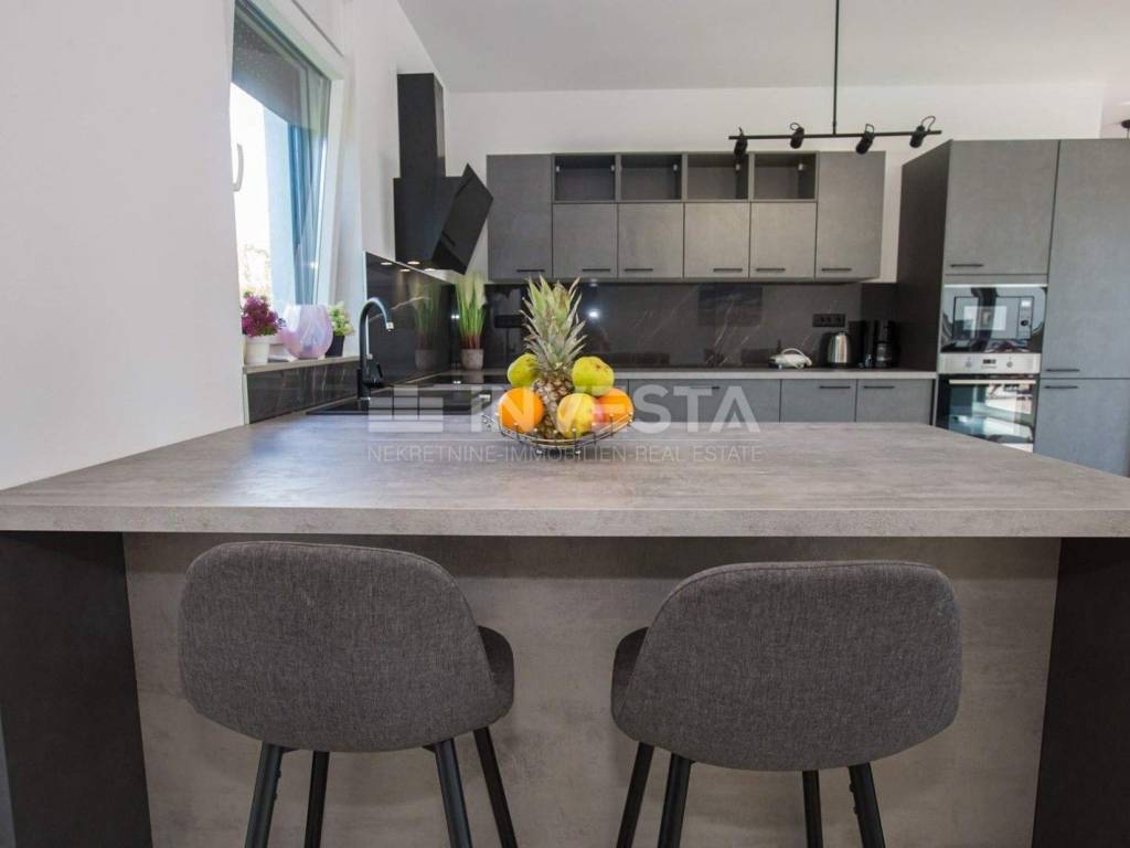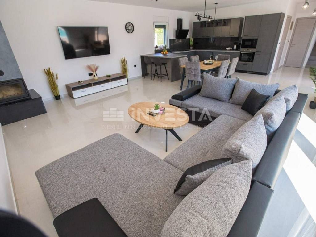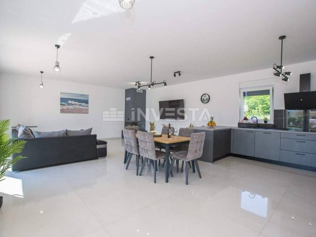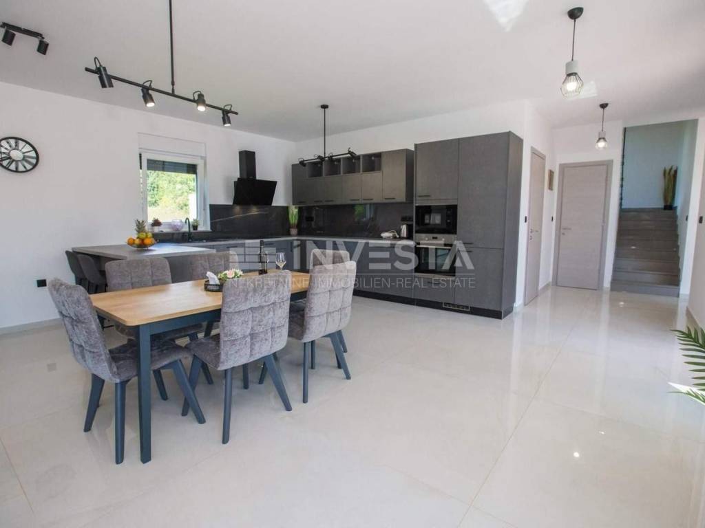 A modern villa of special design with an area of 215 m² is for sale in the vicinity of Poreč. It is situated on a plot of 766 m². The villa spans two floors: ground floor and first floor.
