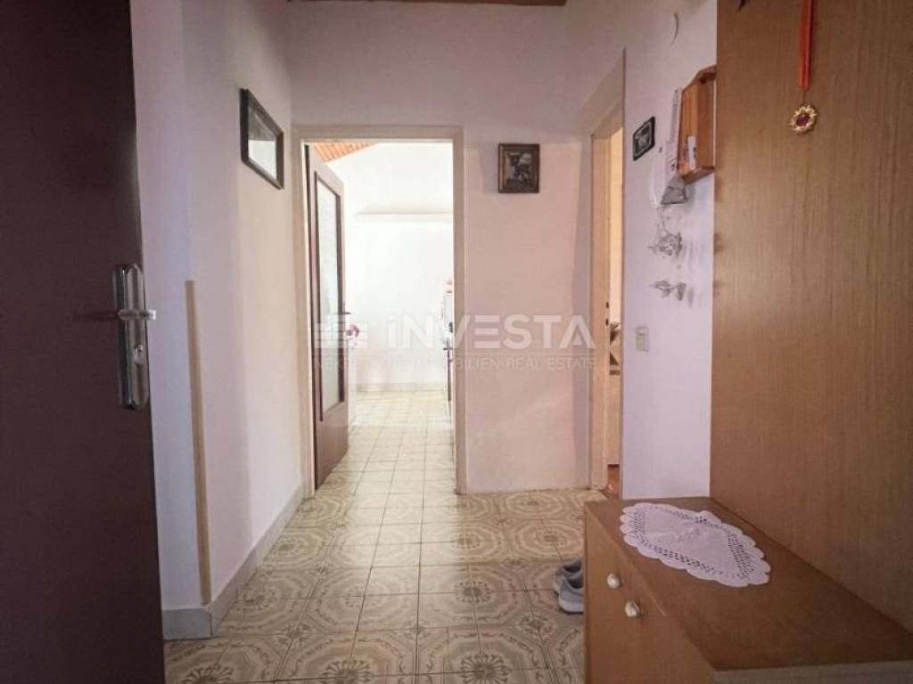 In the very center of Poreč, on the top floor of a residential building, an apartment with a stunning sea view is for sale.
