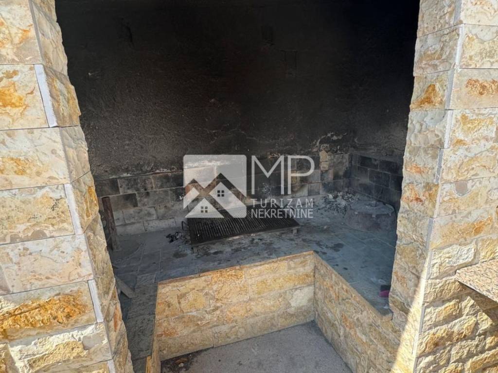 As part of the summer kitchen on the outside there is a fireplace. On the large fenced plot there are olive trees, an orchard, and there is enough space to park several cars.