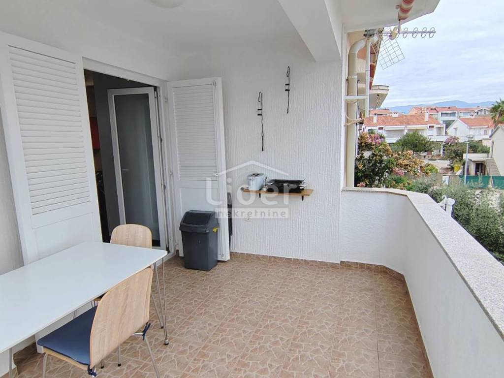 It contains two rooms, a kitchen, a living room, a bathroom and a spacious terrace with a seaview