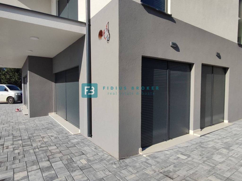 Nalazi se u prizemlju stambeno-poslovne zgrade, ukupne korisne površine s koeficijentima 102,05 m2, terase s prekrasnim pogledom, te posjeduju parkirno mjesto.