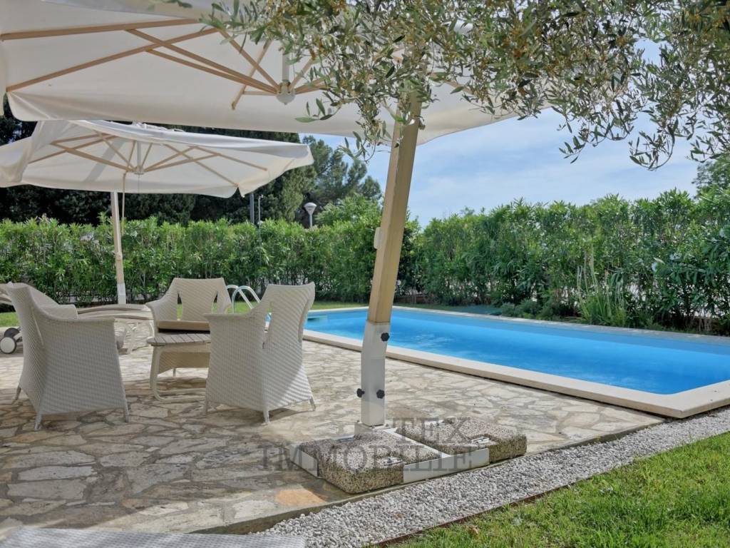 This unique modern villa is situated in a prestigious location, just 30 meters from the sea and 7 kilometers from the enchanting town of Umag. The villa is located in the front row to the sea. Along the coast stretches a promenade with numerous dining establishments and tourist amenities: restaurants, beach bars, and shops.