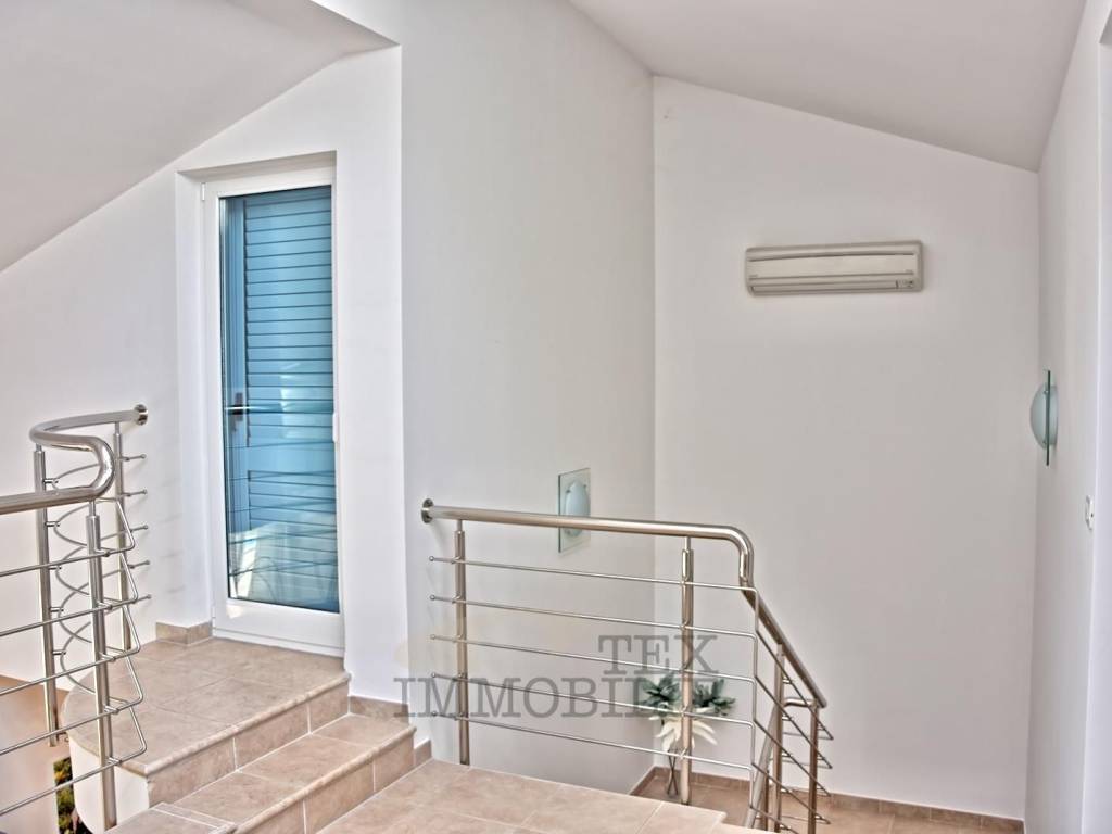 On the first floor, there are two bedrooms with a shared bathroom and a large terrace with a stunning sea view. The villa is fully equipped and furnished with premium Italian furniture.