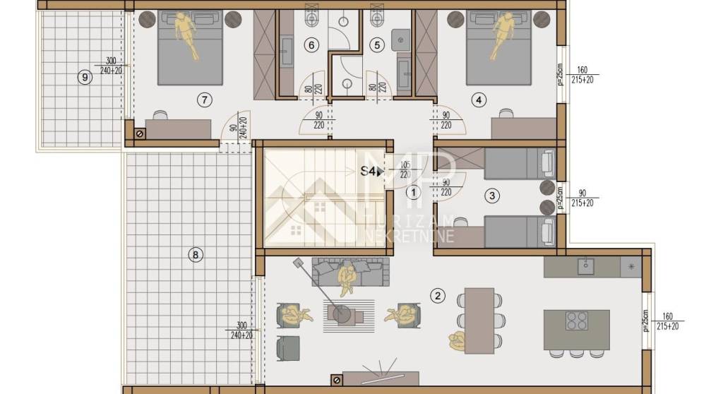 Penthouse S4 is located on the second floor and has a total area of ​​111.25 m².