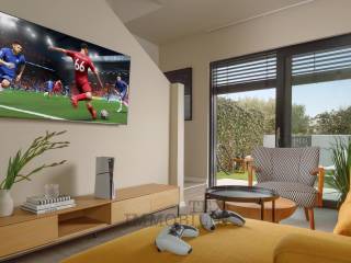 On the ground floor, there is a spacious and bright kitchen connected to the living and dining area, creating a cozy and functional open space.