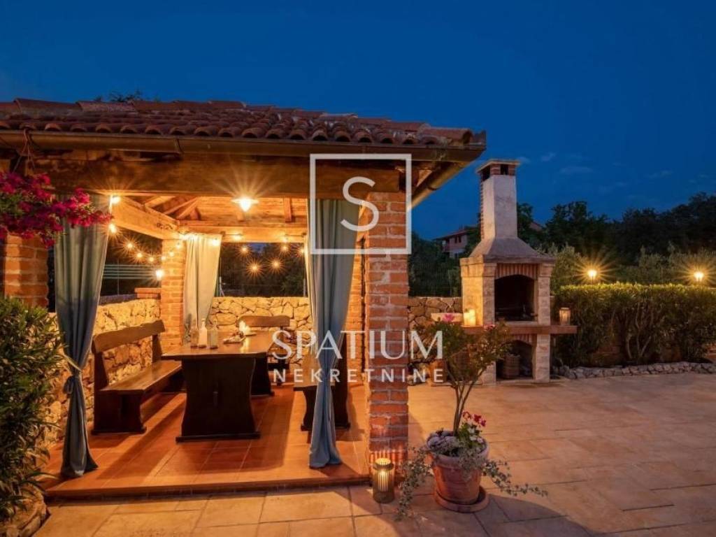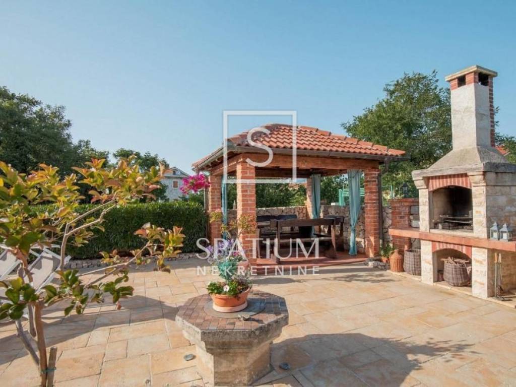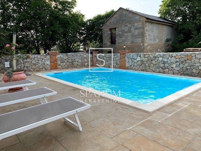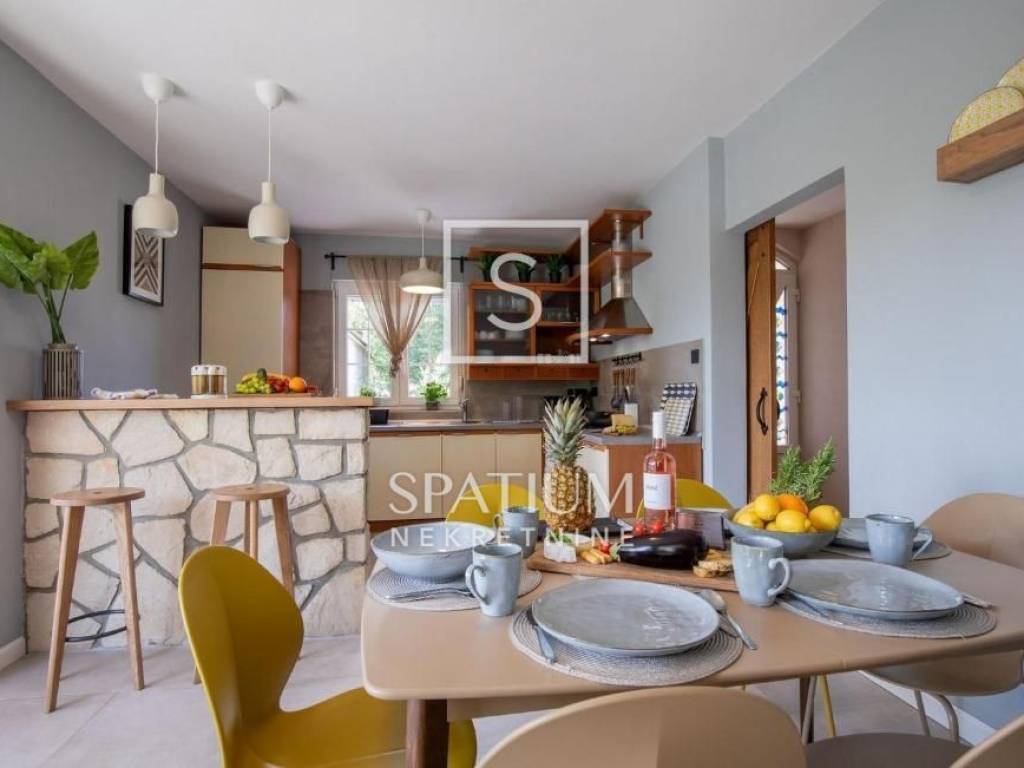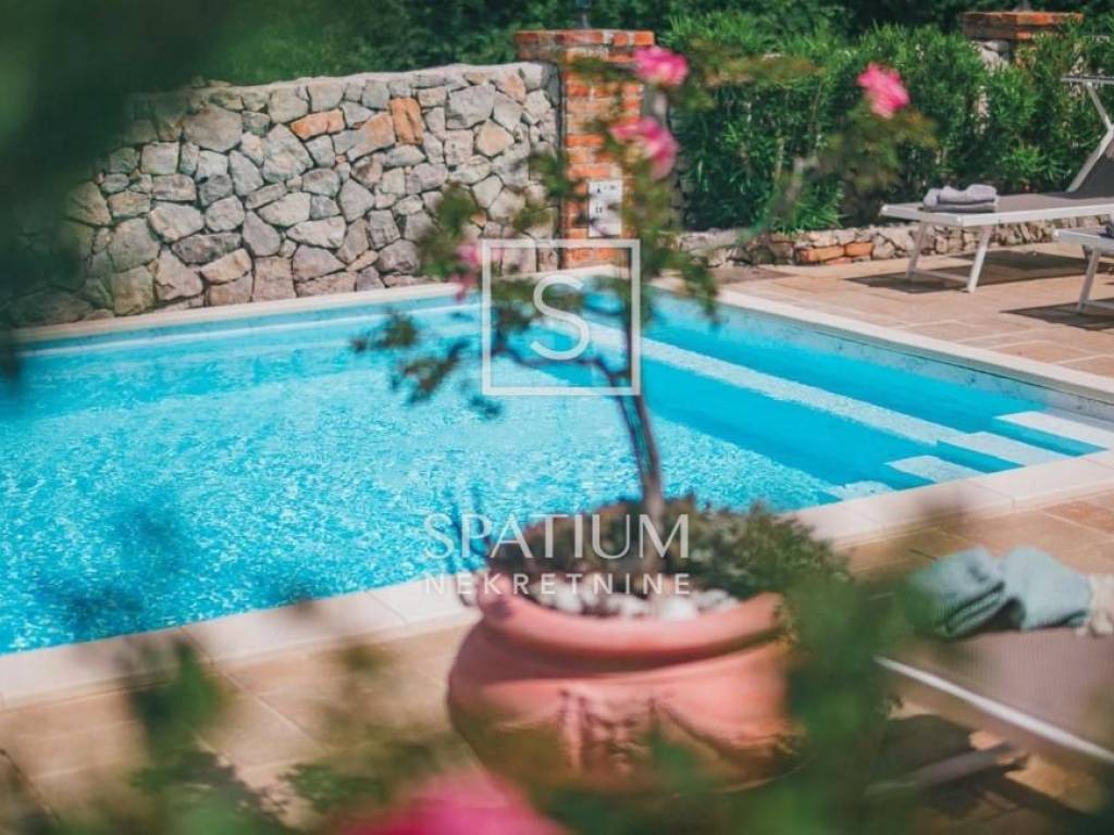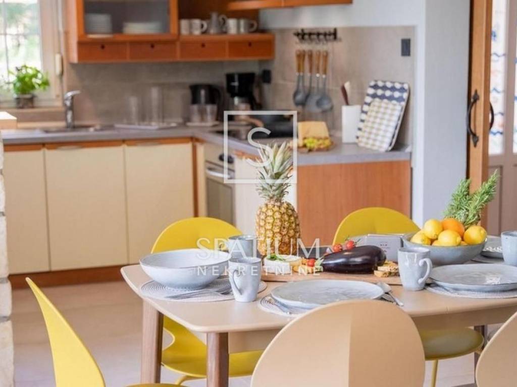 KLIMNO, in the offer we got a villa with a pool of 230 m2, extending to the ground floor and the first floor with a view of the sea. On the ground floor there are three bedrooms, a bathroom, a hallway, a kitchen with a dining room, a living room with access to a covered terrace. The external stairs lead to the first floor, which has two entrances, each with a room with a bathroom and a balcony. There is also a tavern 4 x 4.50. Electric Norwegian radiators and air conditioners are installed. There is a gazebo, a barbecue, a swimming pool and a sunbathing area on the beautifully landscaped garden. Due to its microlocation, the real estate is ideal as an investment for tourism as well as for a peaceful family life not far from all facilities as well as near the sea and beaches.