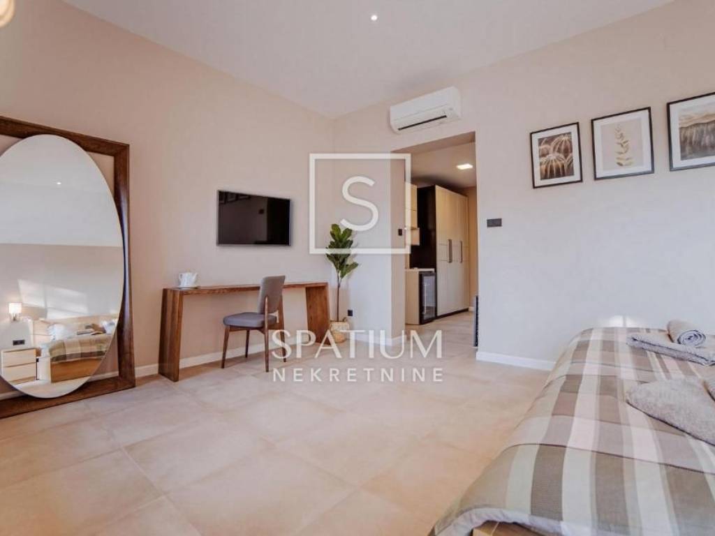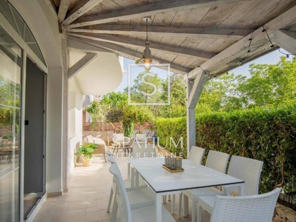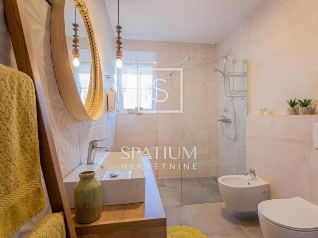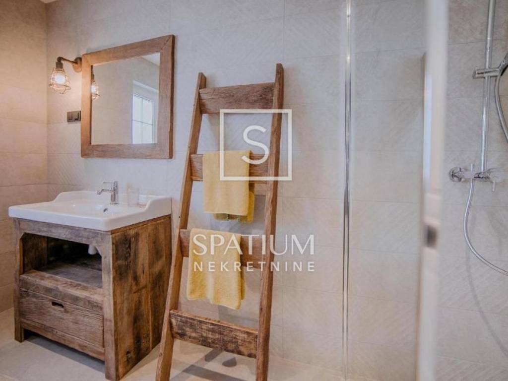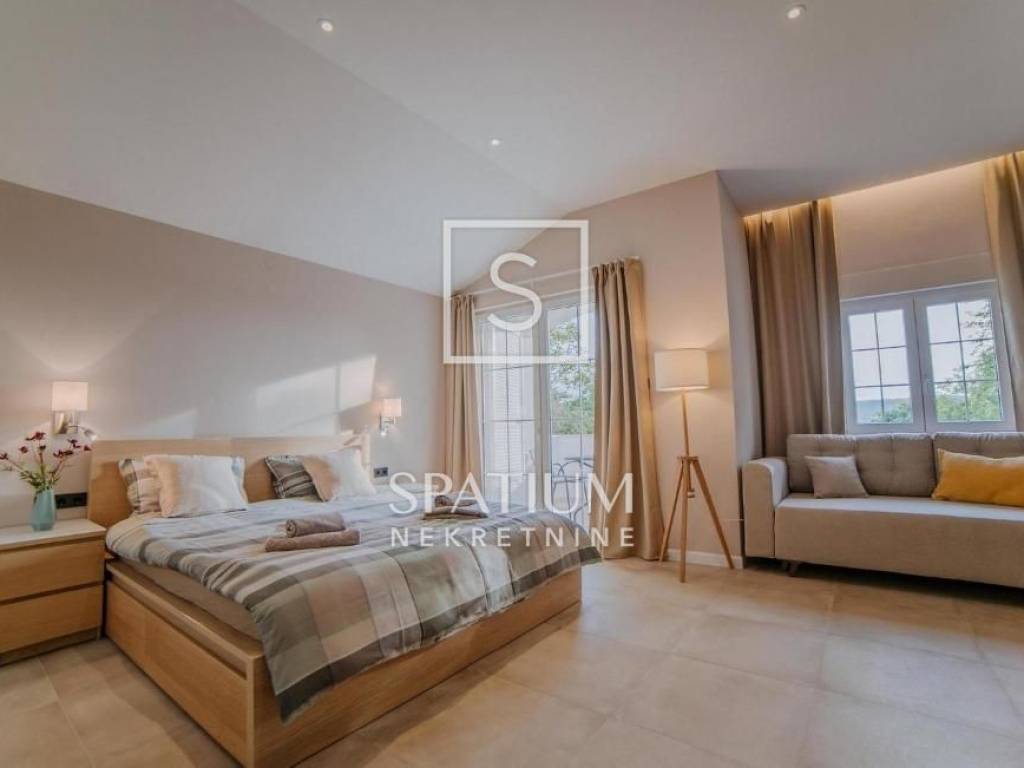 KLIMNO, in the offer we got a villa with a pool of 230 m2, extending to the ground floor and the first floor with a view of the sea. On the ground floor there are three bedrooms, a bathroom, a hallway, a kitchen with a dining room, a living room with access to a covered terrace. The external stairs lead to the first floor, which has two entrances, each with a room with a bathroom and a balcony. There is also a tavern 4 x 4.50. Electric Norwegian radiators and air conditioners are installed. There is a gazebo, a barbecue, a swimming pool and a sunbathing area on the beautifully landscaped garden. Due to its microlocation, the real estate is ideal as an investment for tourism as well as for a peaceful family life not far from all facilities as well as near the sea and beaches.
