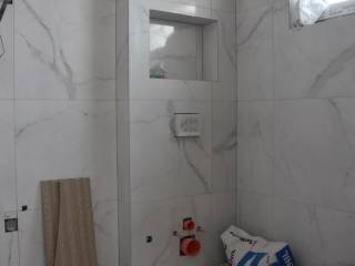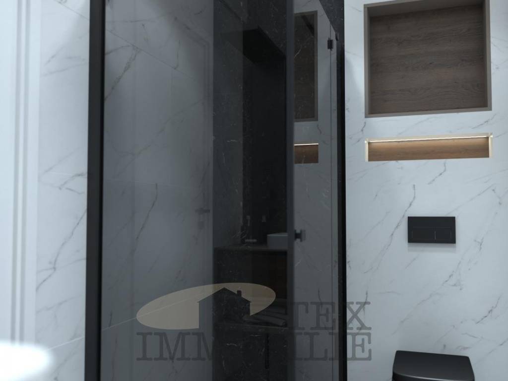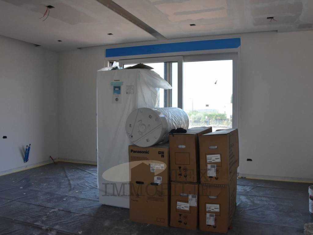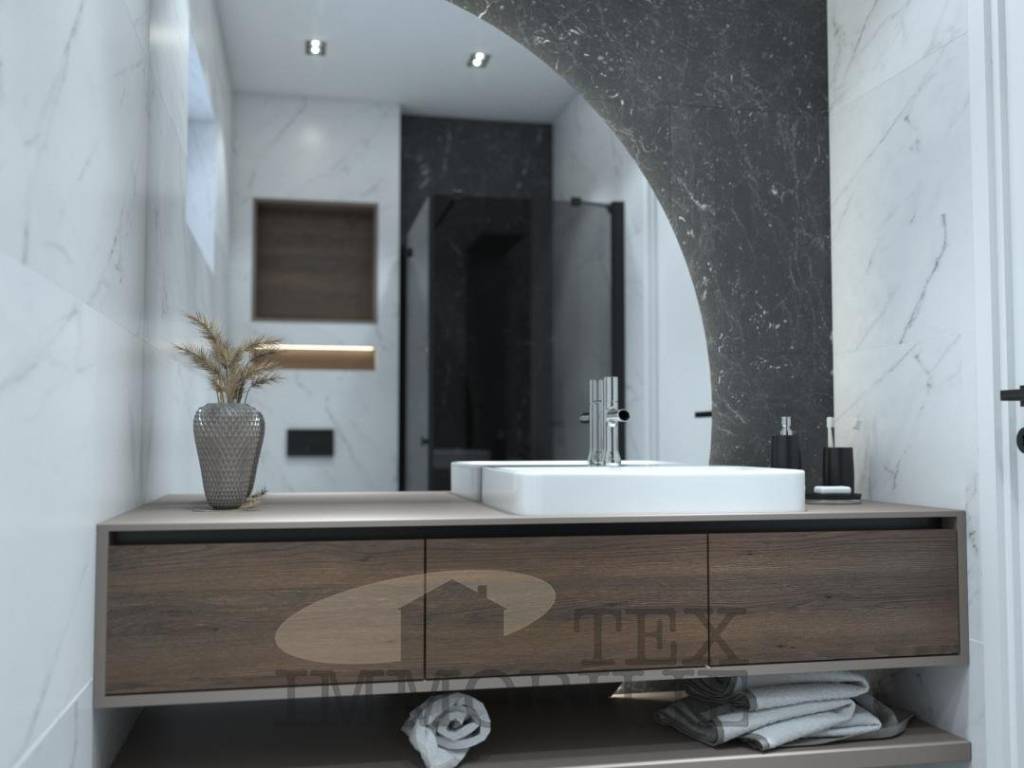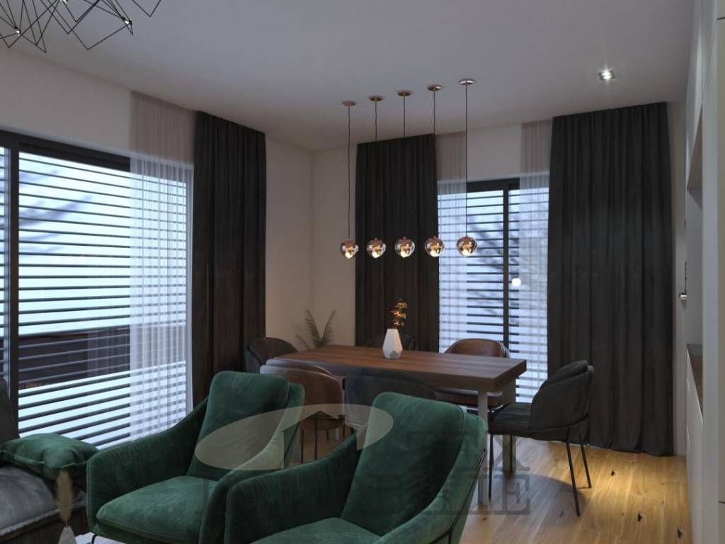 The exterior insulation will be made of 10 cm thick stone wool with a density of 110 kg/m3, and the color will be Caparol/JUB. As for the exterior carpentry, it will be installed with triple-glazed glass filled with Argon, the profile thickness will be 8.5 mm, and a mosquito net will be installed. The entrance door will have a fingerprint unlocking system with memory for 6 people. The interior carpentry will be of the BINNI brand, with door heights of 2.30 m and magnetic closing. The interior walls will have additional sound insulation, and the ceilings will be lowered with Knauf. Parquet flooring 1.5-2.0 cm thick from the HARO Germany brand will be installed, and the ceramics will be made of Italian porcelain.
