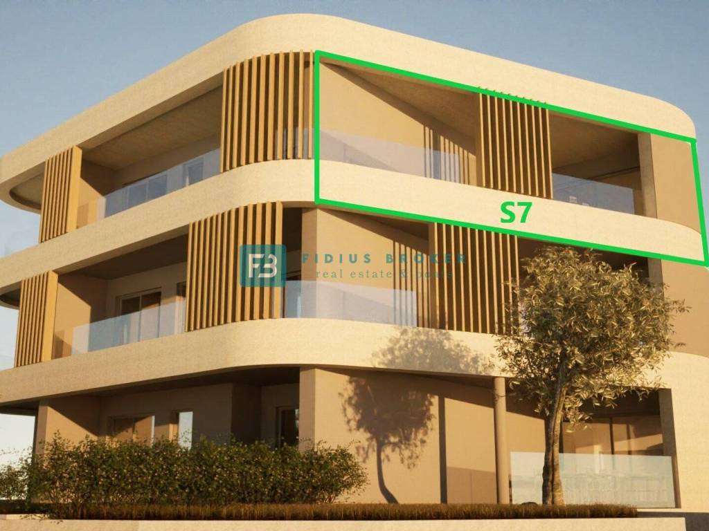 Apartment S7 with a total usable area of 97.52 m2 (living area 79 m2 + terrace 18.52 m2) + parking 12.50 m2 is located on the 2nd floor. It is oriented towards the southeast. It consists of a hallway, two bedrooms, a laundry room, two bathrooms, a kitchen with a dining room and a living room with access to a covered terrace of 18.52 m2 with a beautiful view of the sea. The apartment has a parking space in the courtyard of the building.