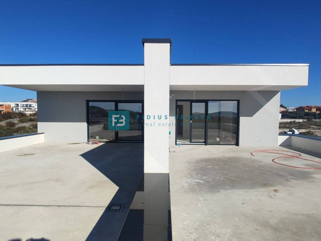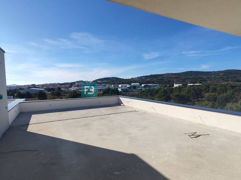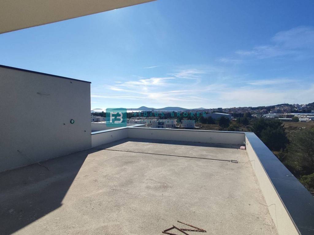 VODICE - Modern two-story apartment for sale with a roof terrace with a beautiful view of the sea and the city, located in a quiet environment!