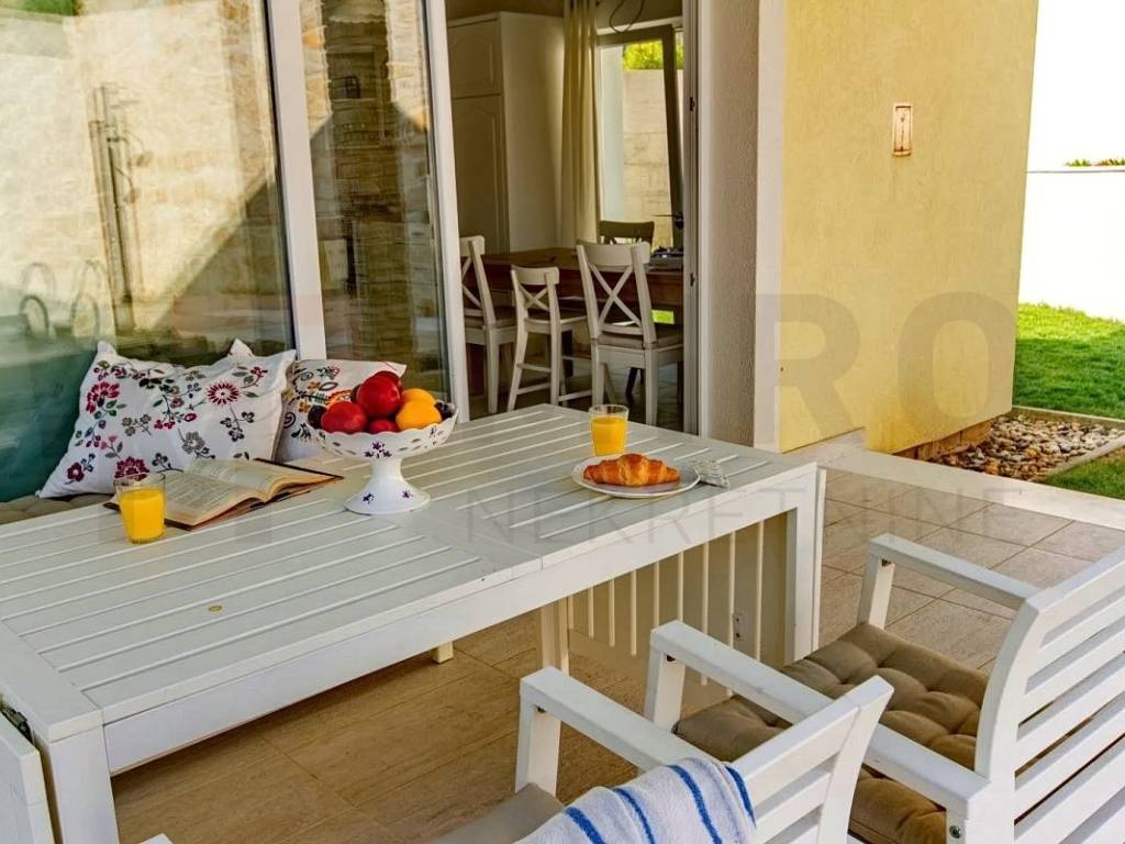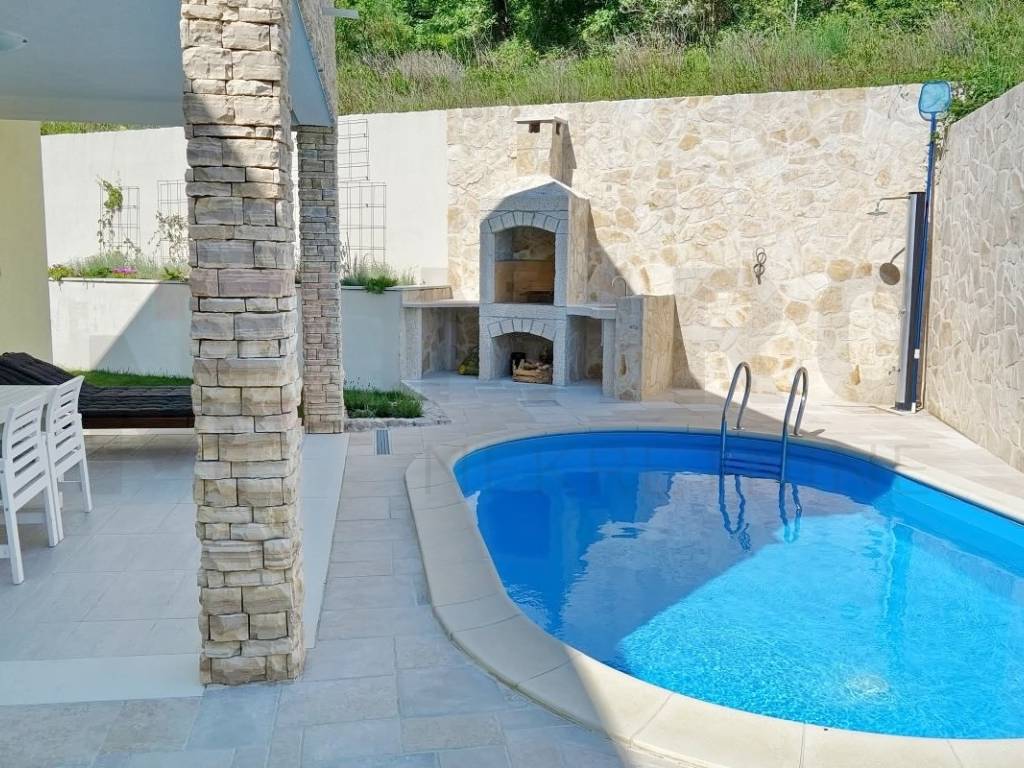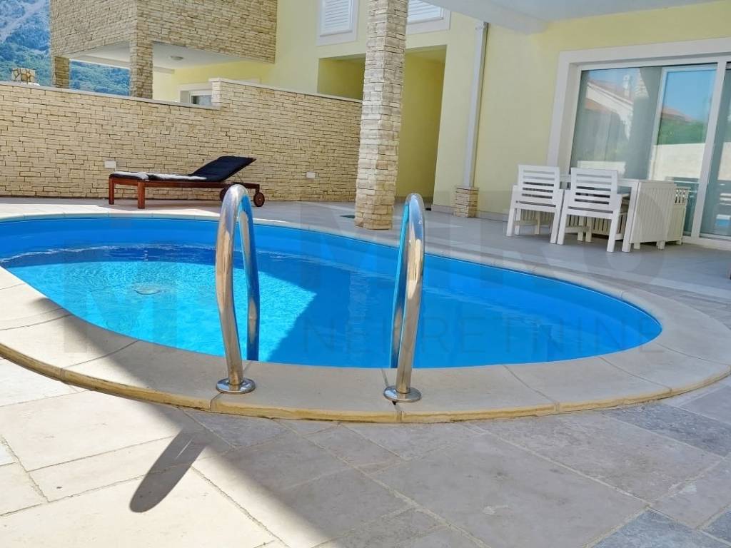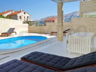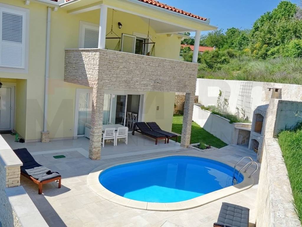 Island of Krk, Baška surroundings, semi-detached house with swimming pool in a quiet location. The house with a living area of 120 m2 has two floors, ground floor and first floor. The spacious ground floor is full of light and consists of a hallway, a guest toilet, a pantry, a kitchen, a dining room and a living room with access to a terrace and a garden with a swimming pool and sun deck. The ground floor and first floor of the house are connected by internal stairs, on the first floor there are three bedrooms, two of which have access to the terrace with a view of the small island and two bathrooms. High quality construction and top equipment. The house is fully furnished and ready to move into. The pool has a heat pump for heating the pool water. The semi-detached house has a parking space for two vehicles on the subject plot. The real estate is owned by a natural person, so the buyer is obliged to pay sales tax in the amount of 3% when transferring its ownership to his name. The seller of the house guarantees complete and orderly documentation. Visit us and find the square footage of your home!