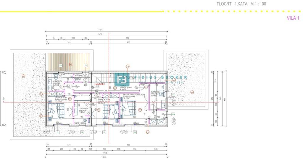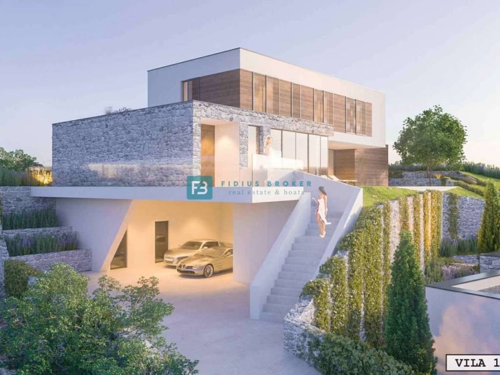New construction, attractive and unique design. Quality materials will be used for construction, and top-quality equipment will be installed, which will achieve high standards of quality, comfort and energy efficiency of the property offered for sale. The building will be constructed using a combination of concrete and brick with 25 cm thick load-bearing walls for strength and stability, the facade will be partially ventilated with decorative cladding made of Trespa or MaxCompact panels, and partially with an ETICS system for aesthetic appeal and energy efficiency, external aluminum joinery with TERMO 85 and TERMO 150 profiles for high insulation and durability, large sliding walls on the ground floor 300 cm high with low-e triple-layer glass for optimal light and insulation. Shutters covered with decorative cladding in the color of the ventilated facade will be installed on the floors for aesthetic appeal and light regulation. The floors will be covered with a combination of luxury ceramics and parquet. The entire house will be air-conditioned with a multi-split system in all rooms for optimal temperature and comfort, a heat pump will be used for heating and hot water preparation, and electric underfloor heating will be installed in the bathrooms. The implementation of a SmartHome system for lighting automation and preparation for the installation of a sound system with built-in speakers, preparation on the roofs for photovoltaic cells and complete preparation for pool heating are planned. Planned completion date - summer 2026.