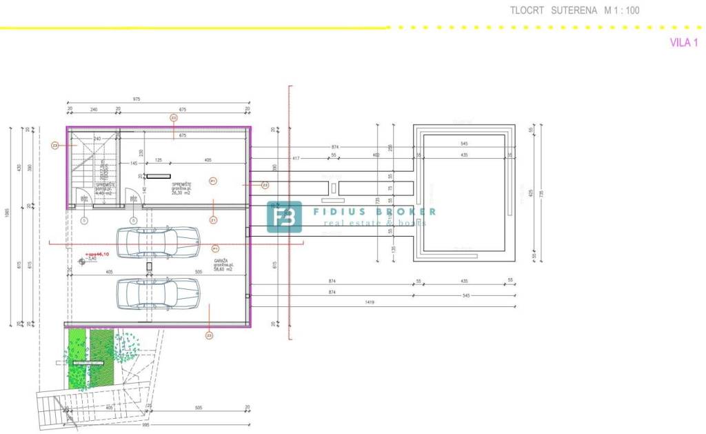 Villa Patricia with a total gross area of ​​374.95 m2 (net area 319.06 m2) built on a plot of 941 m2, extends over three floors and consists of: