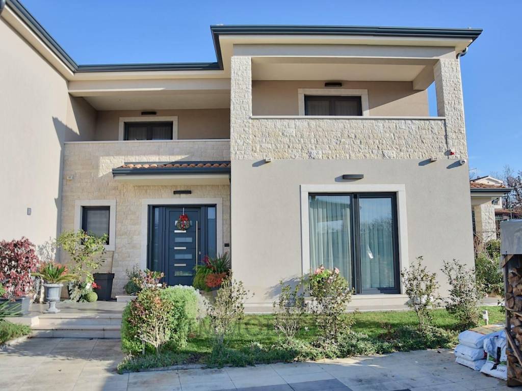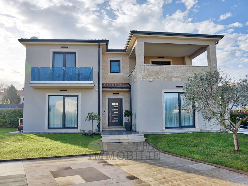 A large house with 6 bedrooms and 7 bathrooms is for sale in Poreč. This beautiful property is only 3 km from the Adriatic Sea and 4.5 km from the historic center of Poreč. The house is divided into two residential units, each measuring 158 m².