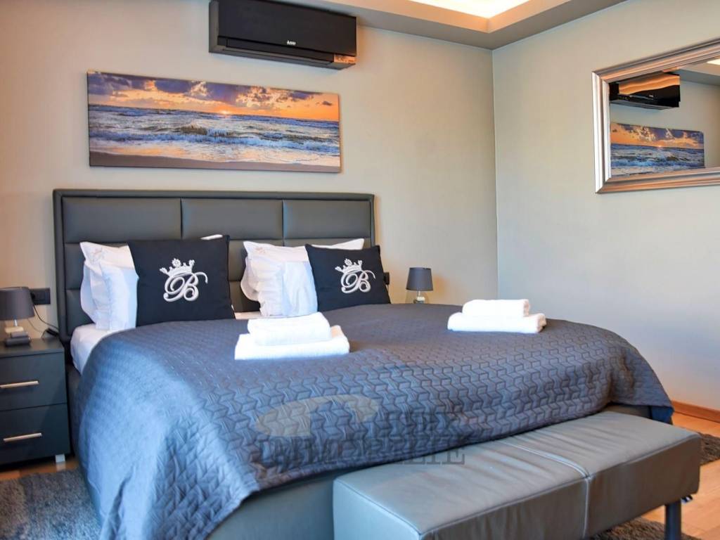 On the first floor, there are two bedrooms with wardrobes and bathrooms, ensuring complete privacy and comfort. The master bedroom also has a covered terrace with a view of the sea.
