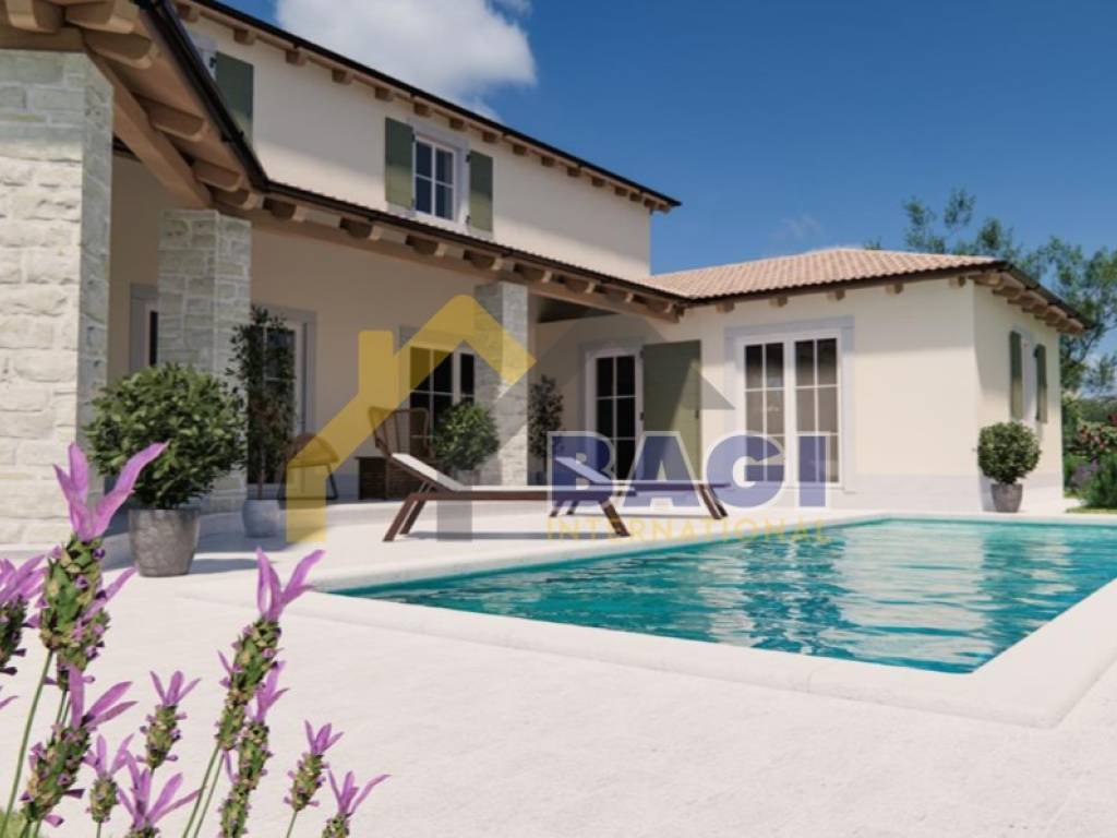 The plot is 764m2, the square footage of the living space is 187m2 net. The dimensions of the pool are 8x4m, the beach of the pool is paved with stone. Covered parking for two cars paved with gravel. The entrance gate to the village is powered by an electric motor, remotely controlled. Internal and external wooden carpentry. Ceramic floors, stone stairs, wrought iron handrails and railings. The house is completely decorated and finished with installed outdoor lighting.
