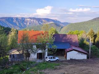 There is a small estate in Gerov - a house with accompanying facilities and land. It is located near the source of the Kupa River. The house has 240m2 living space, two garages, a basement. On the ground floor there is a summer kitchen and a bathroom and a pantry for a winter. On the first floor there is a kitchen, three rooms, a living room and a toilet and another room is in the attic. The heating is the floor central to wood. Electricity and water from its own source. Next to the house is a 240m2 outbuilding, upstairs started adaptation to the living space, and below that is a tavern. There is a fireplace between the house and the outbuilding and two more garages. The garden has a total of 2000m2.