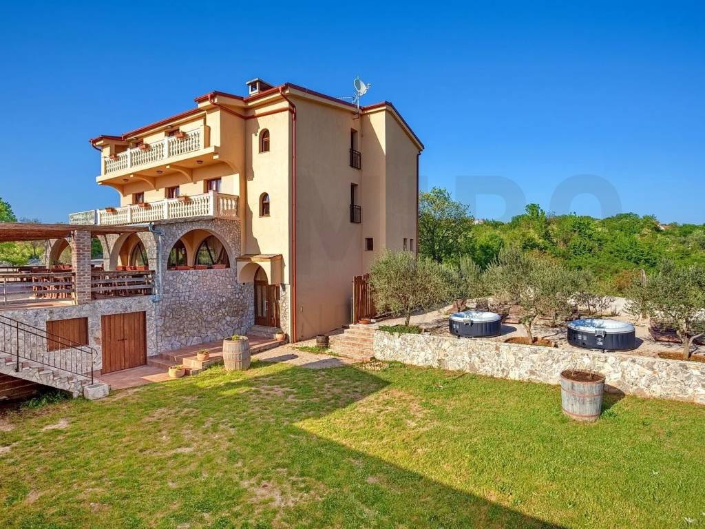 Otok Krk, područje Šotovento, poslovno-stambeni objekt na prodaju na dobroj lokaciji. Nekretnina se sastoji od suterena i tri etaže. Kuća ima površinu od ukupno cca 566 m2. U prizemlju se nalazi lijepo uređena konoba sa terasom. Radi se o uhodanom poslu ugostiteljskog objekta. Predmetna nekretnina ima 12 soba, svaka sa vlastitom kupaonicom i balkonom koje su pogodne za iznajmljivanje. Nekretnina je lijepo uređena, kao i okućnica koja obuhvaća površinu od cca 1040 m2. Objekt ima još 5 zasebnih WC-a. Predmetna nekretnina ima i prostor za parkiralište svih gostiju kao i igralište za djecu. U suterenu se nalazi spremište sa kotlovnicom i vešerajem. Također, nekretnina omogućuje daljnje širenje posla. Nekretnina se prodaje namještena i opremljena. Sa kata se pruža i djelomičan pogled na more. Prilika za poduzetnike s obzirom na uhodani posao konobe te iznajmljivanja. Nekretnina je u vlasništvu fizičke osobe. Vlasnik kuće jamči uredne dokumente i brz prijenos nekretnine. Agenti posredničkog ureda Stan Grad Immobilien pomoći će vam u kupoprodaji i prijenosu vlasništva kuće.