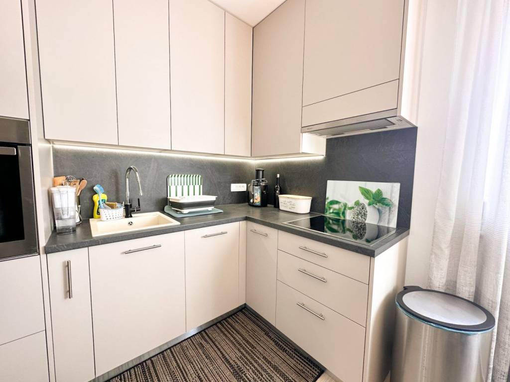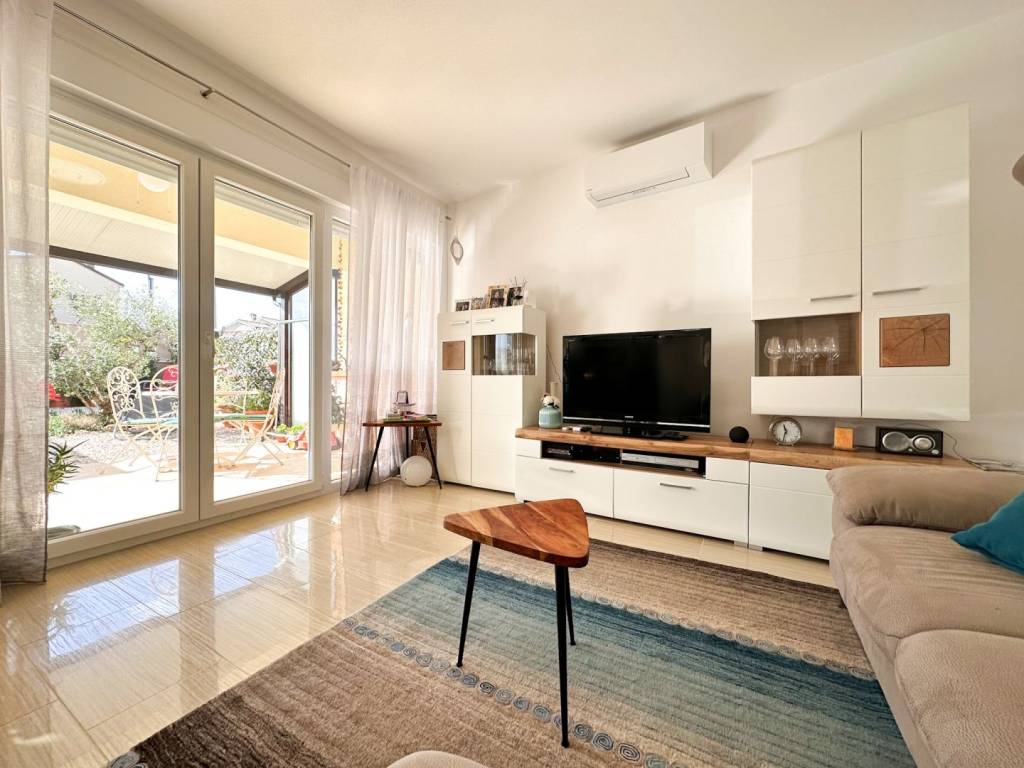 The apartment was modernly decorated and furnished in 2021, and particular care was taken in the design of the garden. The garden is beautifully decorated and additionally fenced with wooden panels and a green fence, and decorated with Mediterranean herbs and a bonsai olive tree.