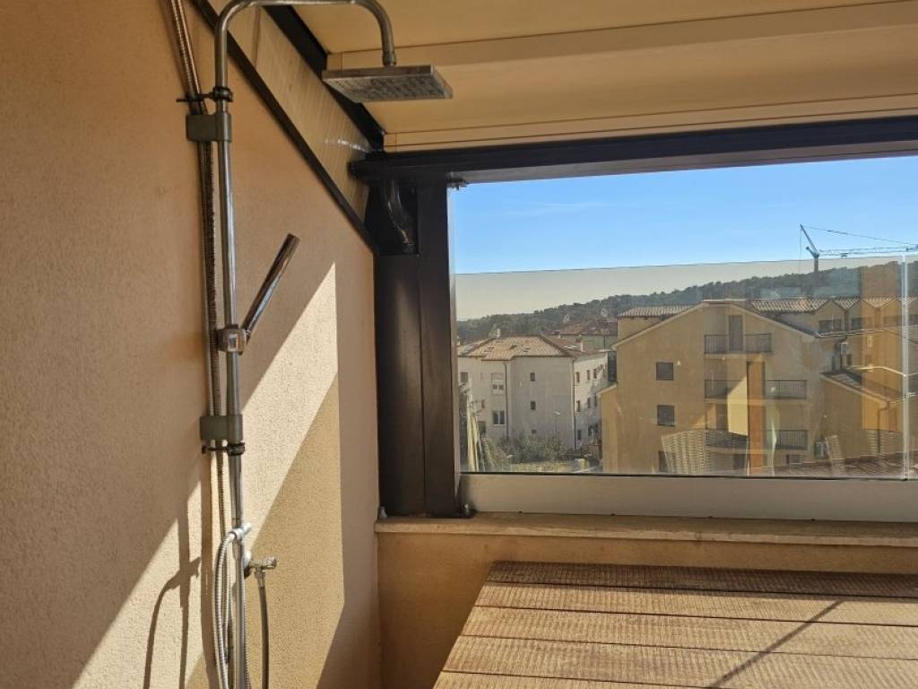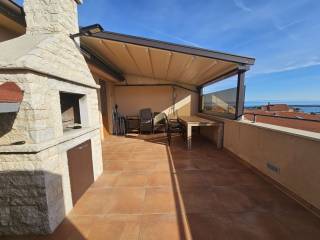 Balcony and loggia: A spacious balcony with a shower and a fireplace overlooking the sea provides the perfect space for enjoying the outdoors, while the loggia further enriches the private space of the apartment, also with a view of the sea.
