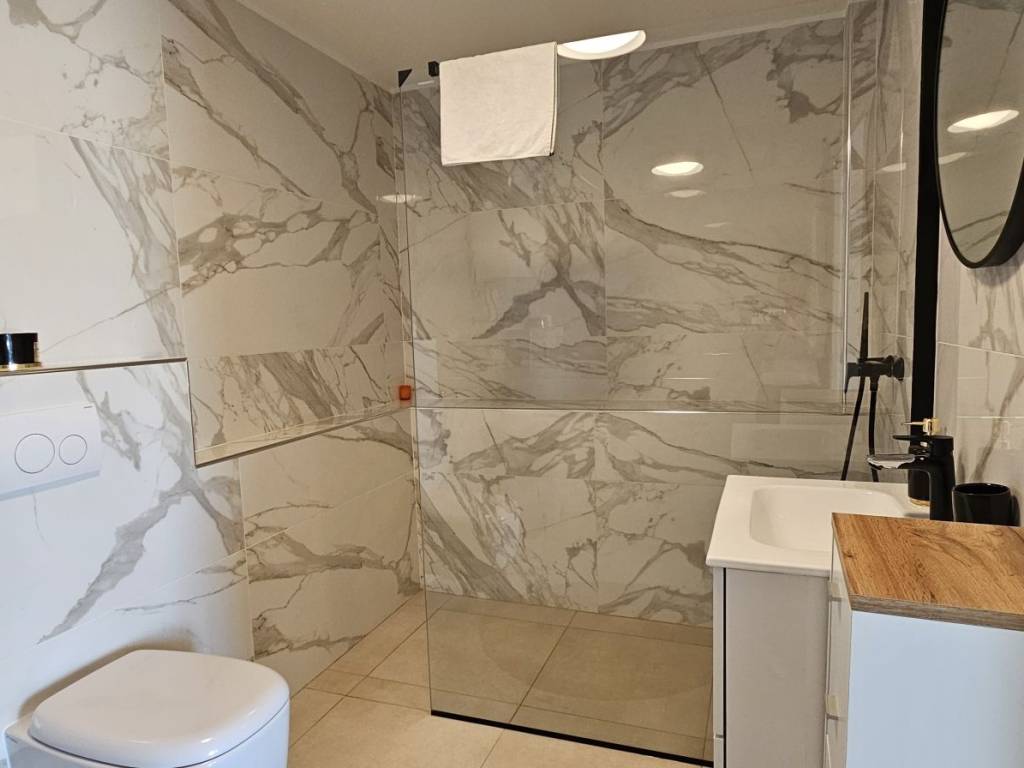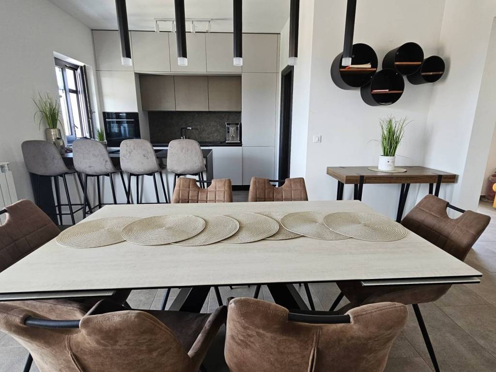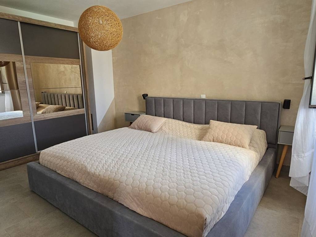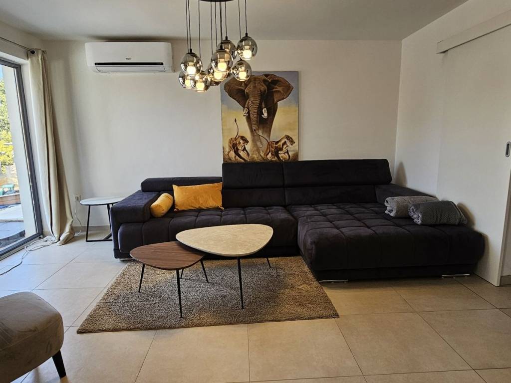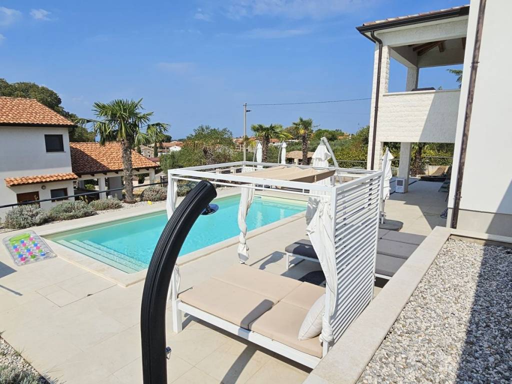 On the first floor, the house consists of a kitchen, dining room and living room, all in an open space area with access to the terrace with a beautiful view of the sea and the city of Poreč, then we have 3 bedrooms and two bathrooms.